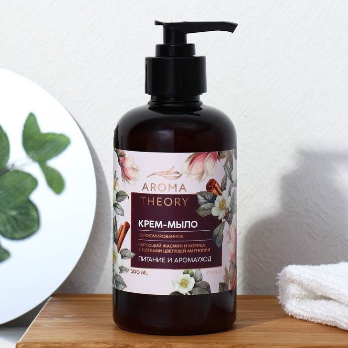 Погрузитесь в мир нежности и уюта с парфюмированным жидким мылом 'Aroma Theory'. Это мыло не только очищает, но и дарит вам уникальный аромат жасмина, магнолии и корицы, который наполняет ванную атмосферой расслабления и комфорта. Каждое использование превращается в маленький ритуал, который поднимает настроение и создает ощущение заботы о себе.