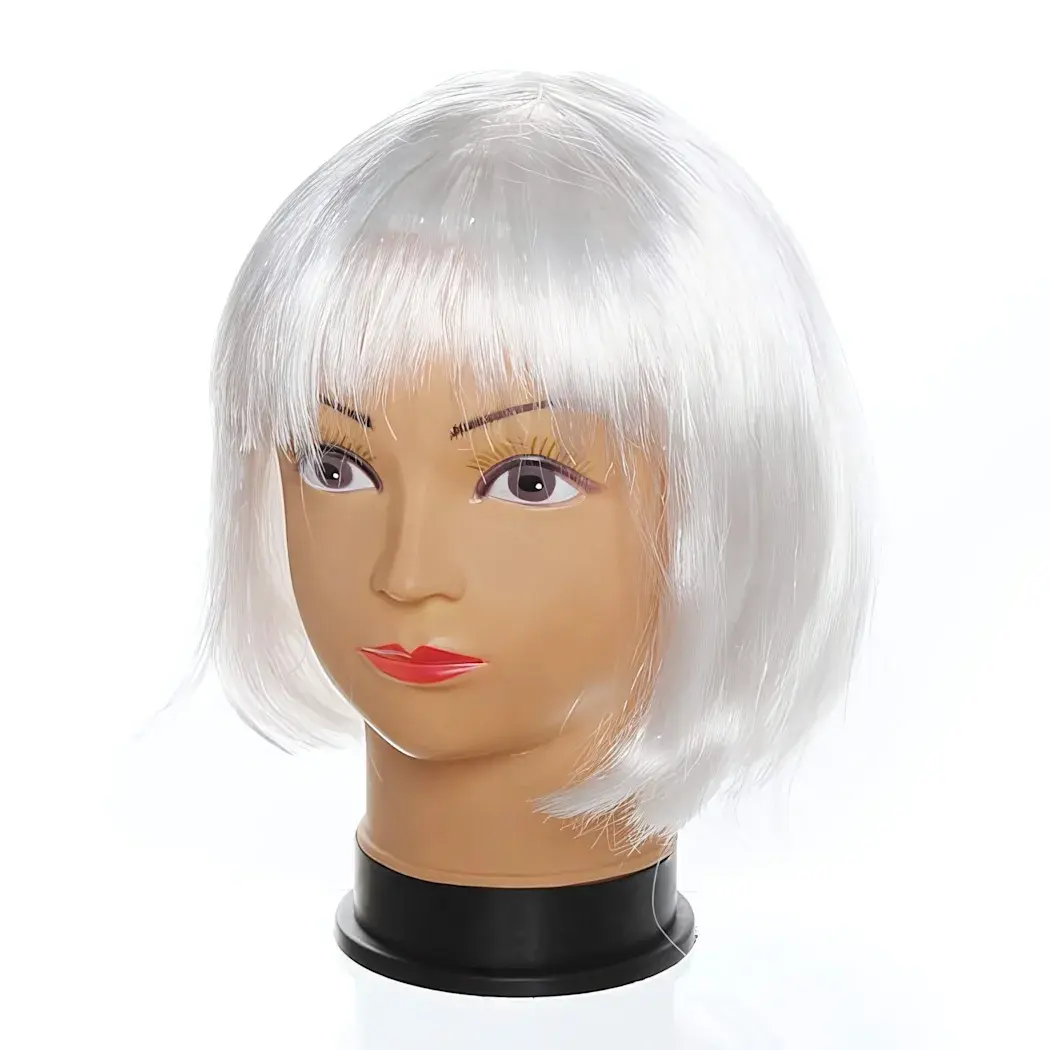 Парик имеет короткую прическу bob с ровными кончиками и челкой, что делает его универсальным для различных образов. Его белый цвет добавляет свежести и оригинальности вашему стилю. Не упустите возможность порадовать себя и своих близких, подарив этот карнавальный парик на праздник!