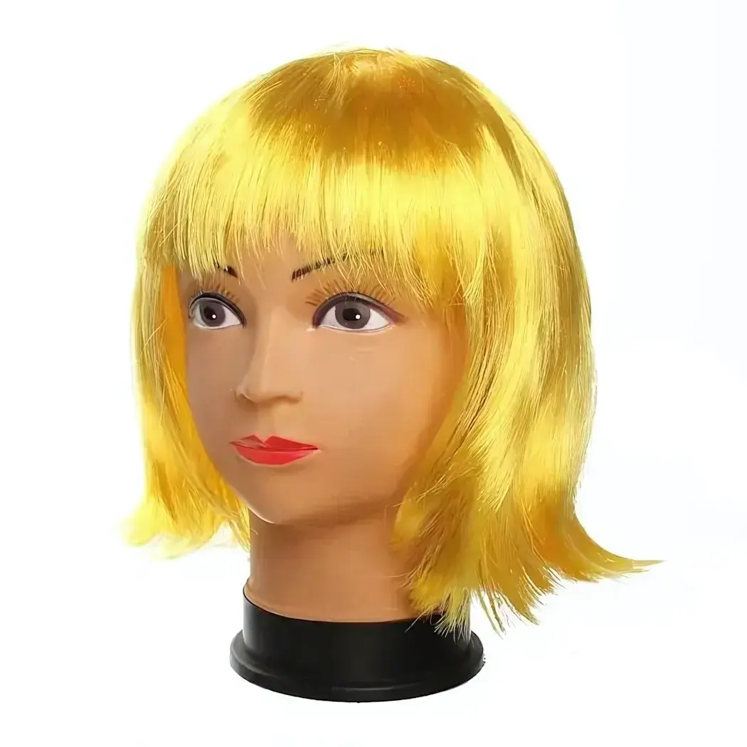 Парик подходит для различных мероприятий и праздников. Он легко надевается и снимается, что делает его удобным в использовании. Благодаря яркому золотистому цвету и стильной короткой прическе с челкой, вы будете выглядеть привлекательно и стильно. Этот парик отлично подойдет как для взрослых, так и для детей, добавляя веселья и радости в любой праздник.