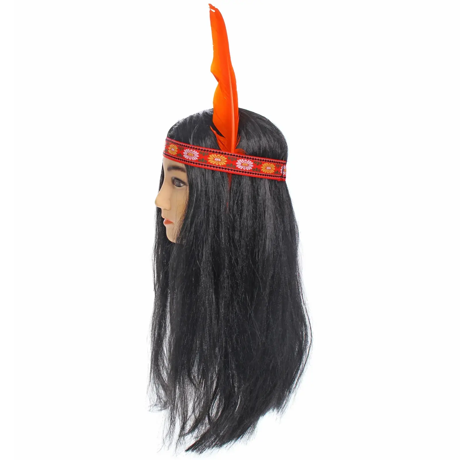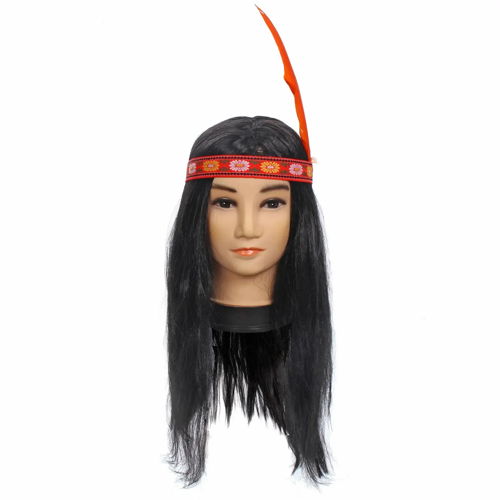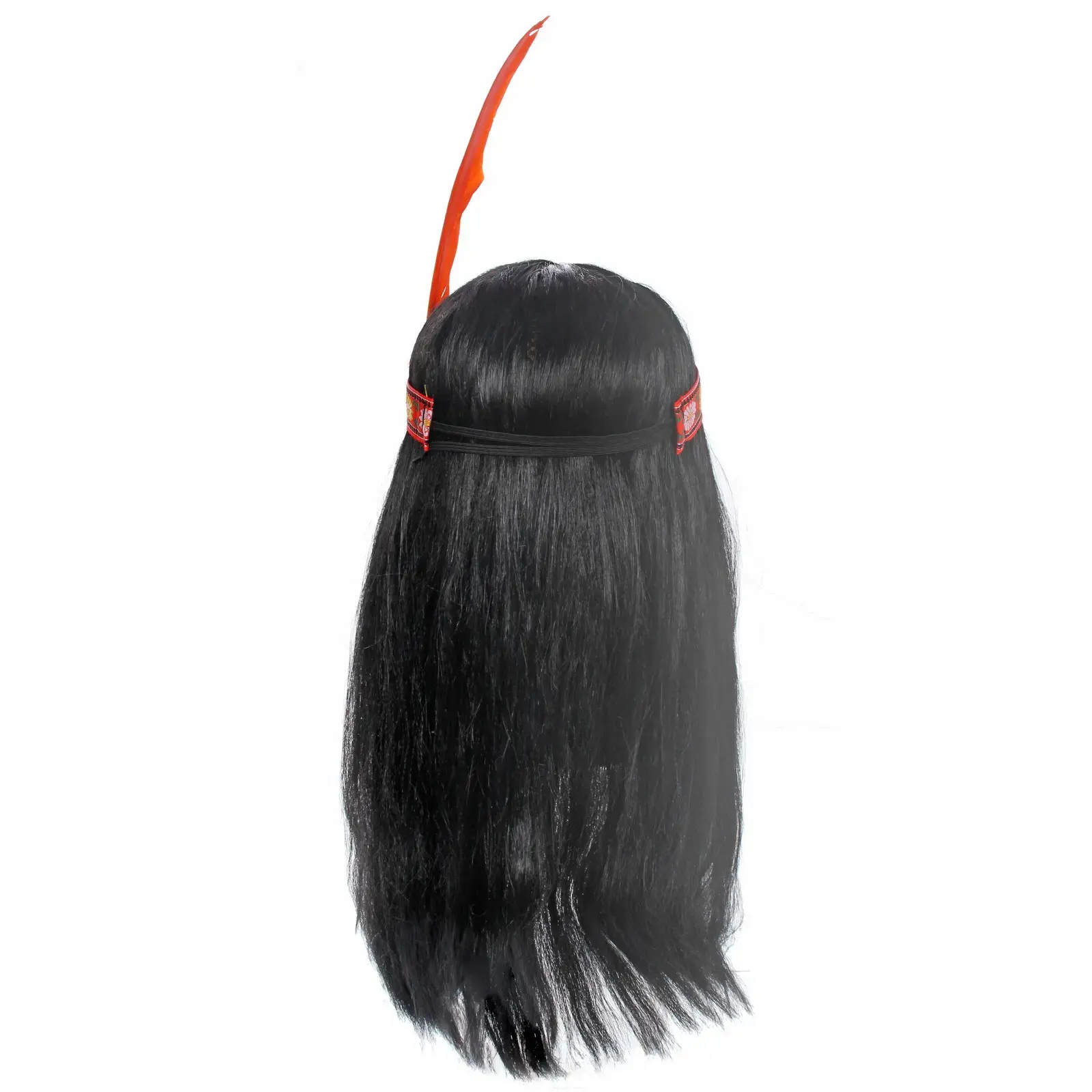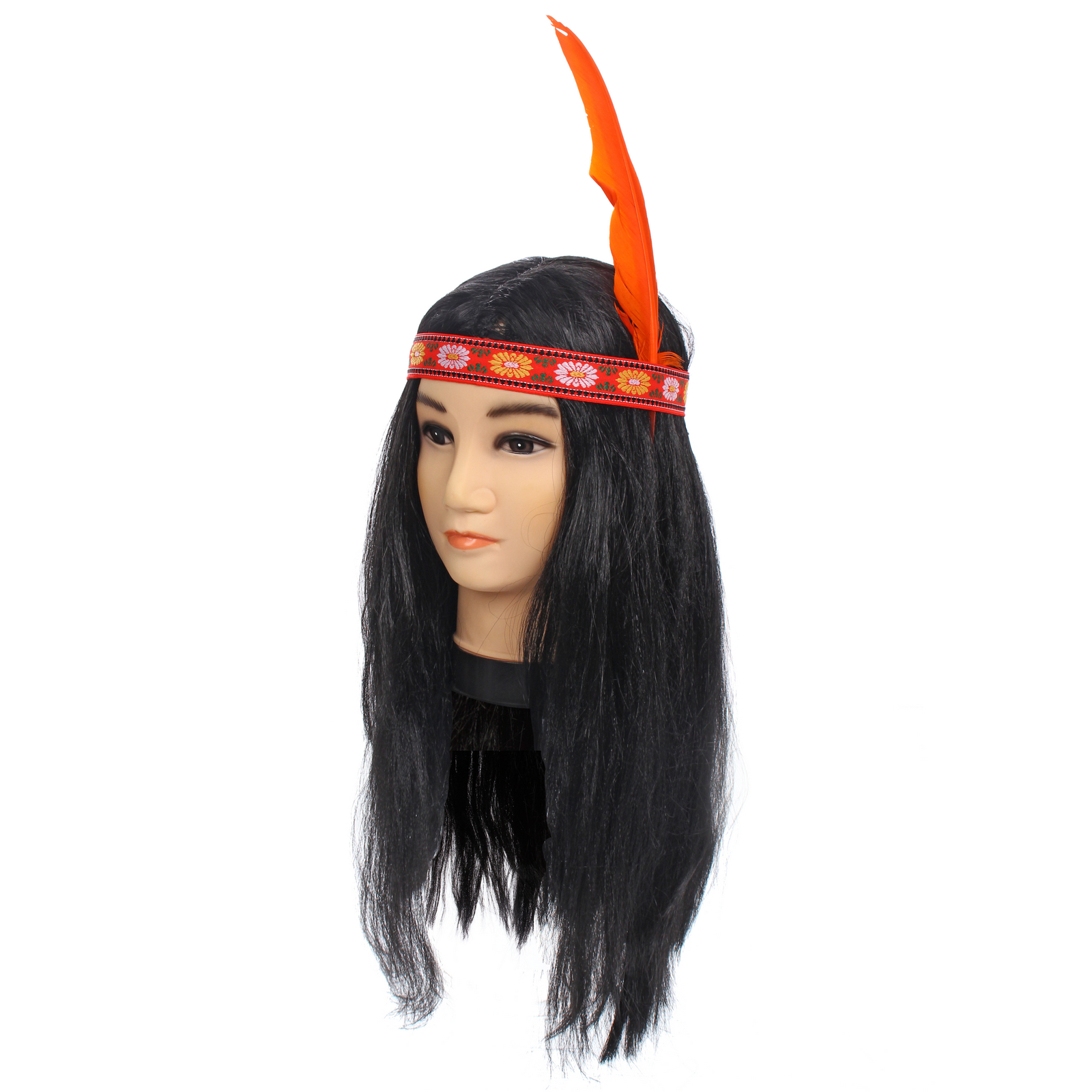 Парик имеет длину волос, достигающую плеч, что позволяет создавать различные прически. Красная лента с цветочным узором и оранжевое перо добавляют оригинальности и делают его идеальным для карнавальных мероприятий. Не упустите возможность стать центром внимания на любом празднике с париком «Племя Индусов»!