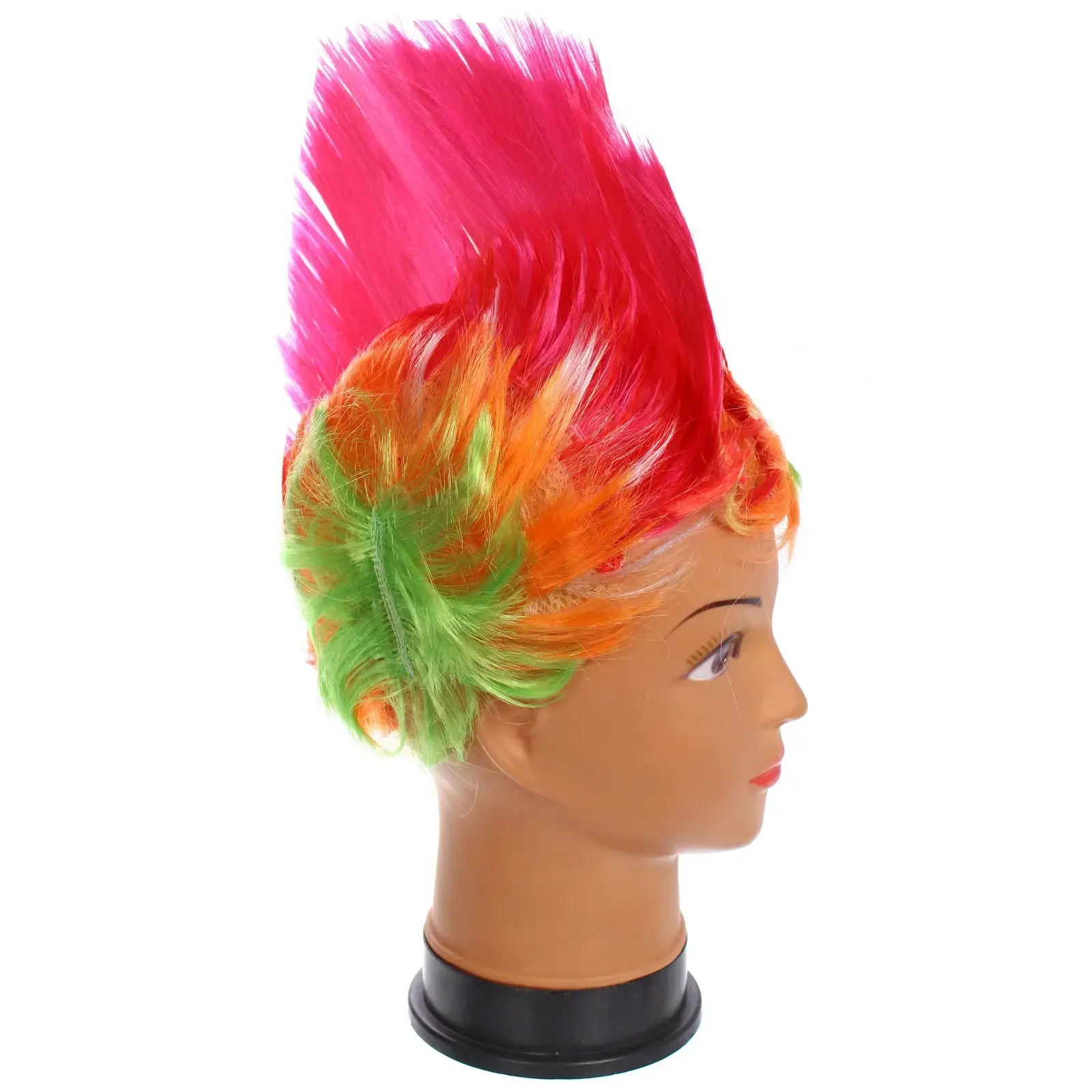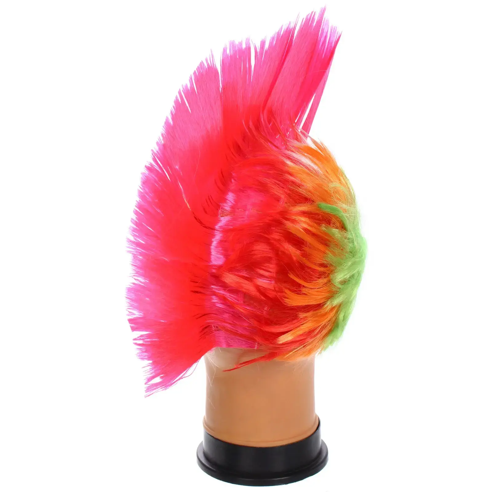 Создайте уникальный стиль с карнавальным париком «РОК», который станет ярким акцентом вашего образа на любом празднике. Этот парик выполнен в розовом мультицвете с элементами оранжевого и зеленого, что придаст вам эффектный и запоминающийся вид. Высокая прическа в стиле «пэнк» с несимметричными элементами и объемными прядями создаст эффект взъерошенности, идеально подходящий для карнавала, вечеринки или тематического мероприятия.