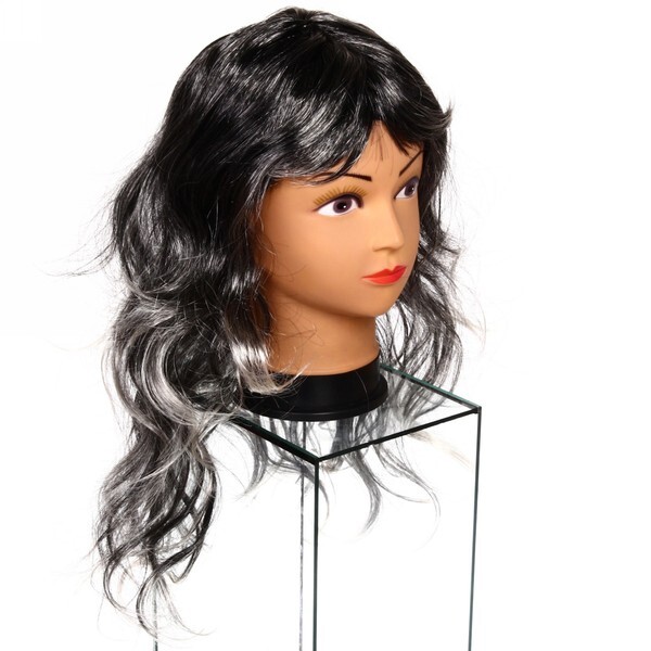 Карнавальный парик 'Жгучая брюнетка' моментально создаст эффектный образ для вечеринок и праздничных мероприятий. Градиентное окрашивание от глубокого черного к серебристым кончикам добавит вашему образу особого шарма.