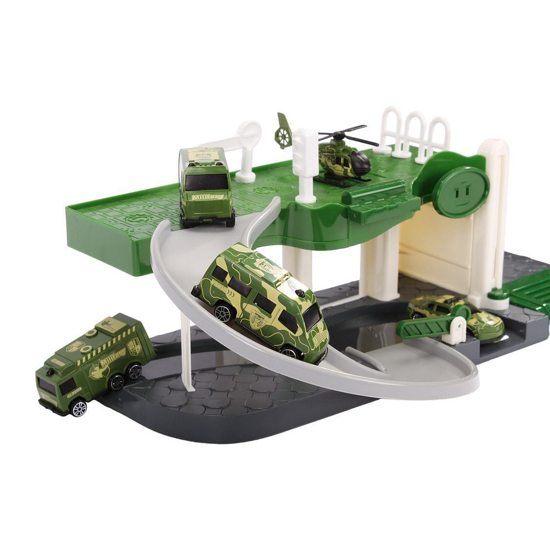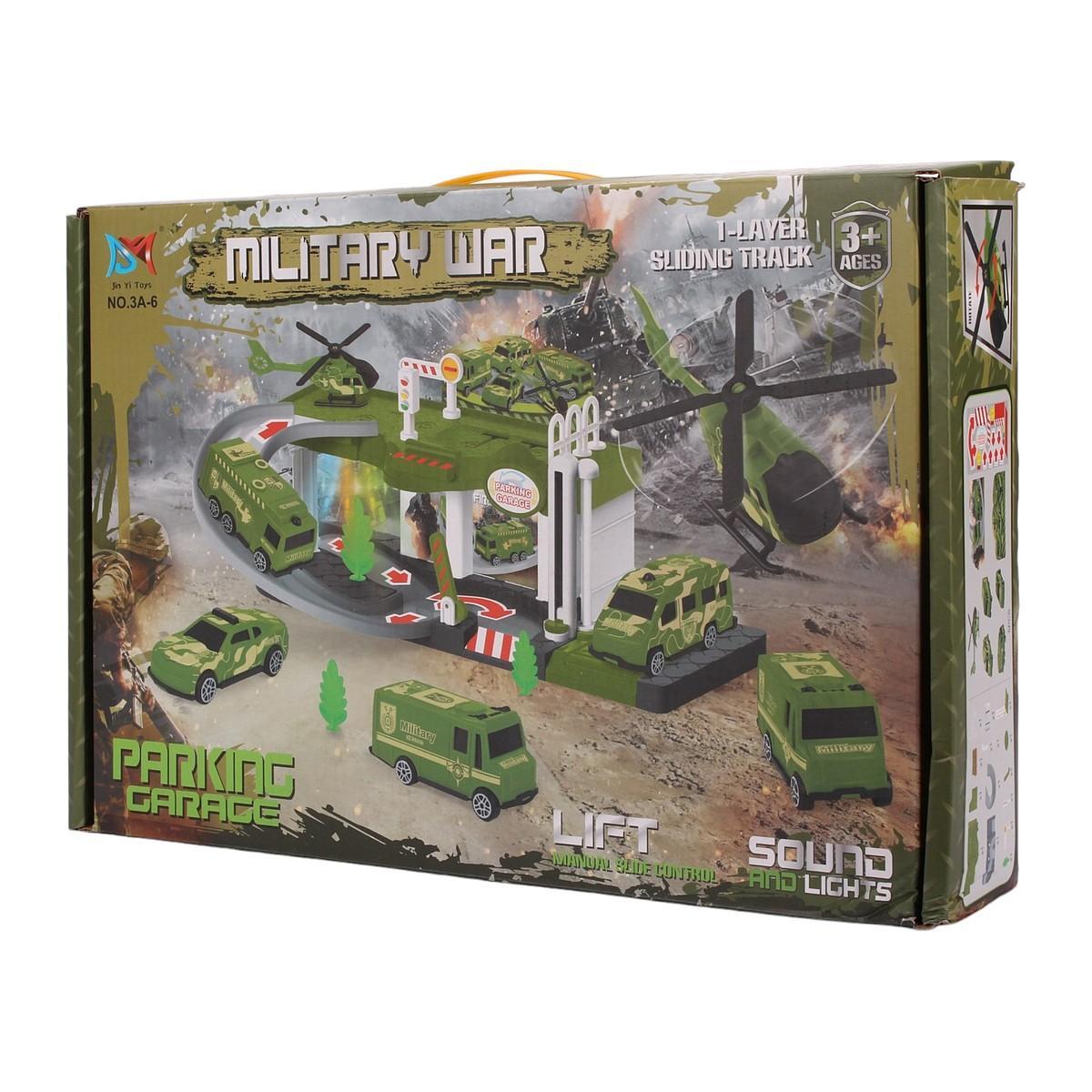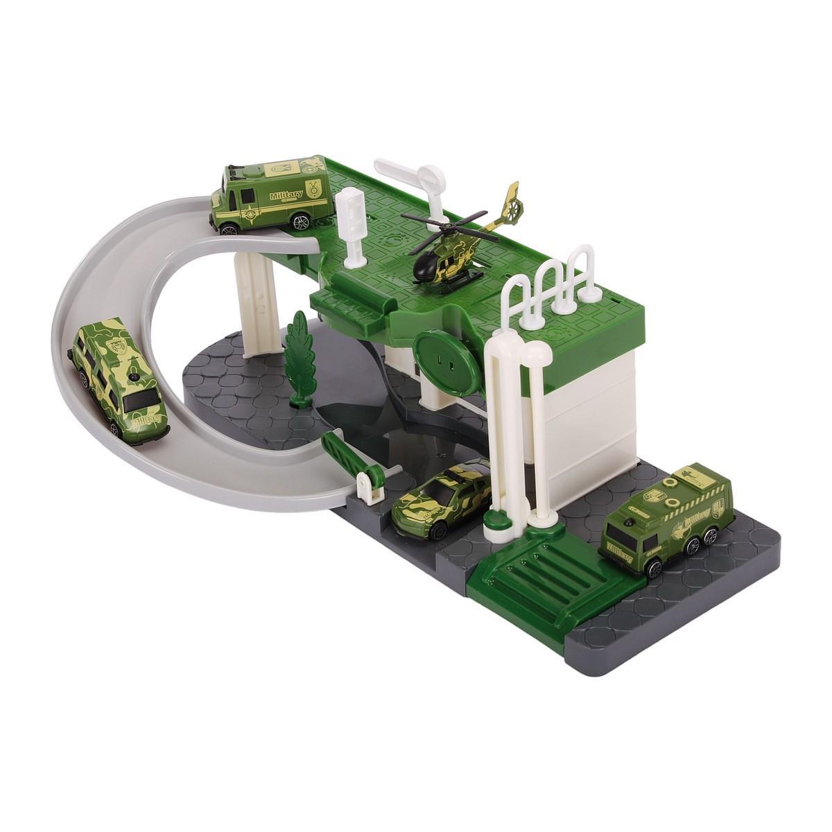 Этот набор предназначен для любителей активных игр, которые хотят создавать свои собственные игровые сценарии с транспортными средствами и военной техникой. Он включает в себя многофункциональную игровую площадку с моделями машин, вертолётом и элементами парковки, что способствует развитию воображения и моторики у ребёнка.
