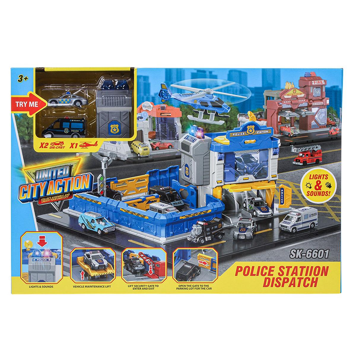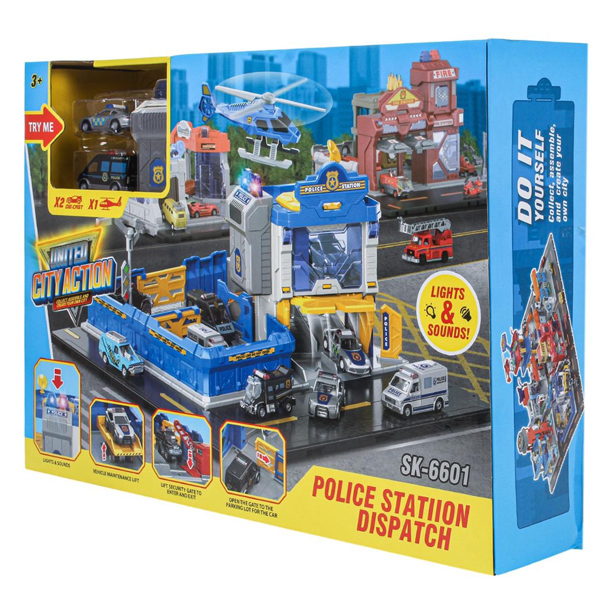 Игровой набор "Police Station Dispatch" — это целый полицейский комплекс, где каждая машинка спешит на вызов, а вертолет готов к взлету. Подарите ребенку возможность почувствовать себя настоящим командиром отряда, управляя транспортом и разыгрывая увлекательные сценарии погонь и спасения. Яркий дизайн, реалистичные детали и интерактивные функции надолго увлекут малыша, развивая его фантазию и координацию движений.