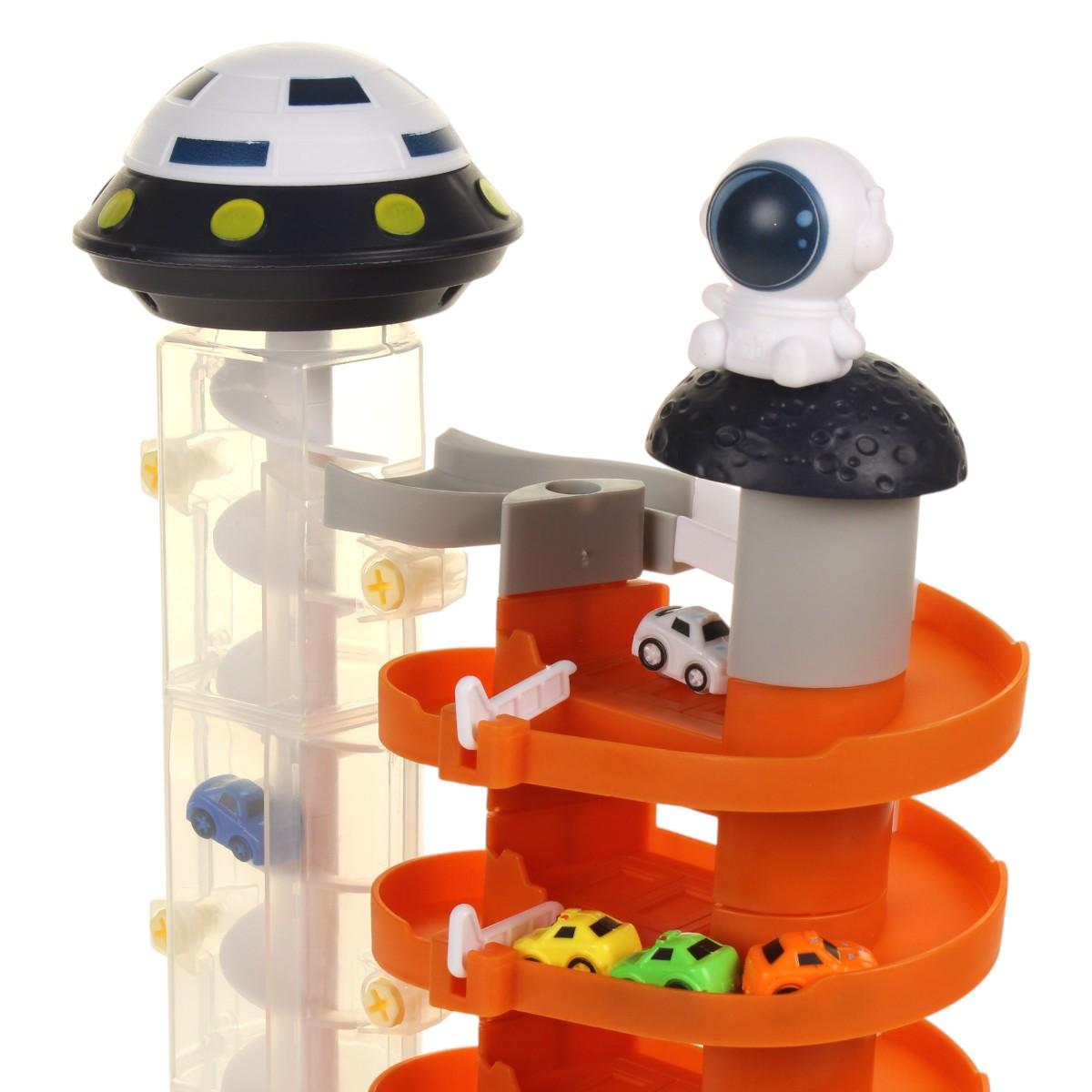 Подарите ребенку настоящее космическое приключение с многоуровневой парковкой "Spacetrack Parking". Яркий дизайн и увлекательная механика игры развивают воображение и мелкую моторику.