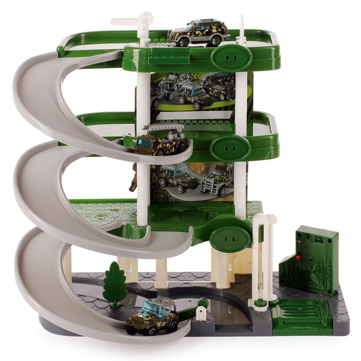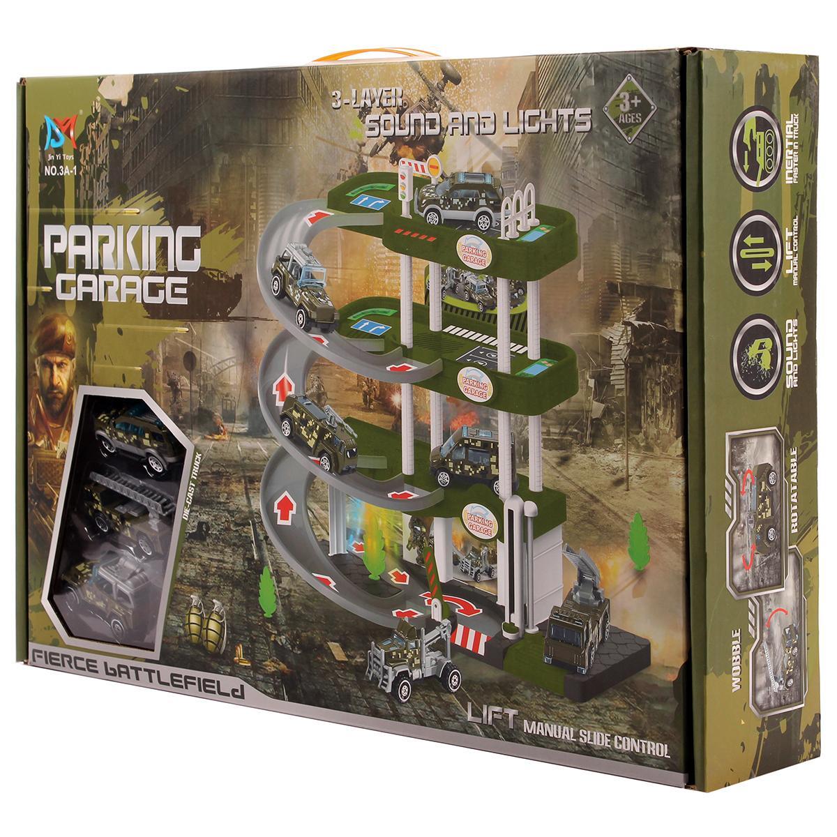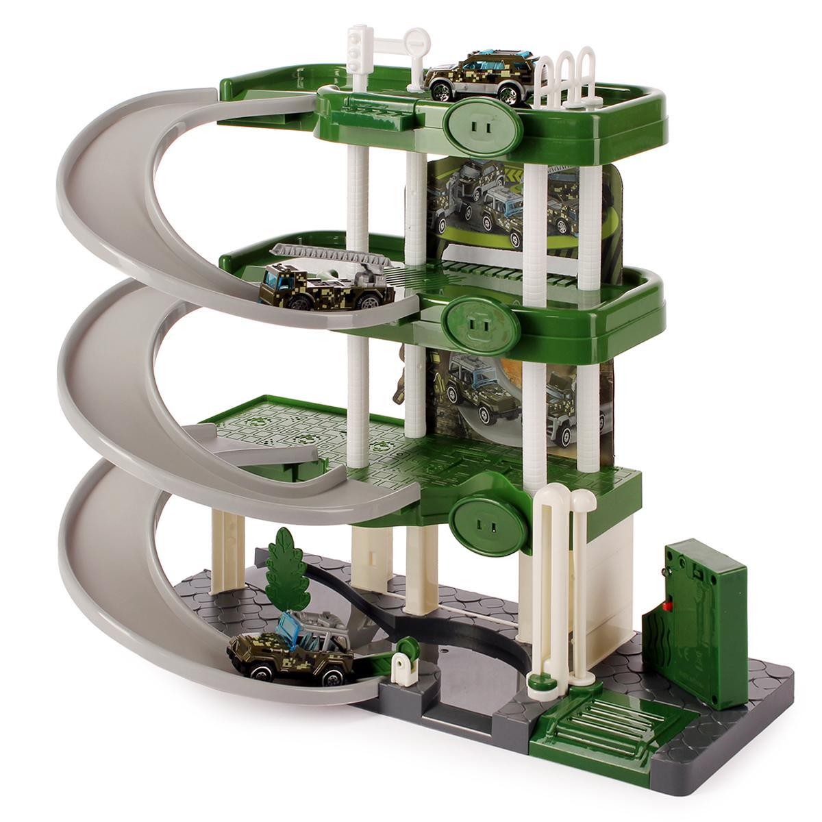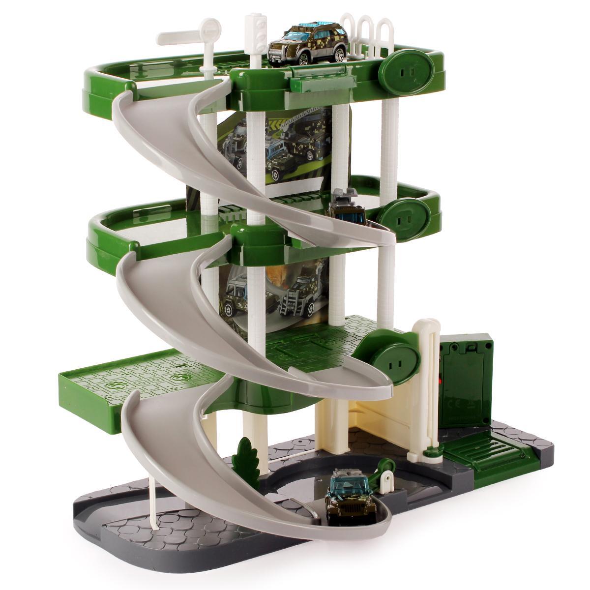 Парковка состоит из трех уровней с плавными наклонами и спиральными съездами, что позволяет автомобилям легко перемещаться между этажами. В комплект входят три миниатюрные машинки и набор наклеек для создания дорожных знаков, что добавляет элемент творчества в игру. Ребенок сможет самостоятельно собрать парковку из деталей, что сделает процесс игры еще более интересным.