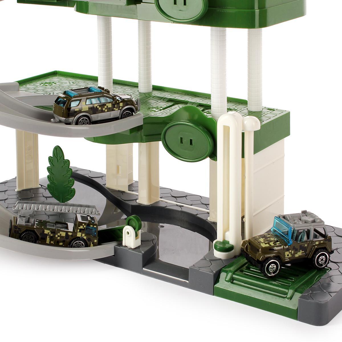 Размеры конструкции не указаны, но она соразмерна с миниатюрными автомобилями, что позволяет легко управлять ими. Основные цвета парковки – зеленый и серый, что делает ее стильной и привлекательной. Игрушка включает элементы, имитирующие дорожные знаки и парковочные места, что добавляет реалистичности в игру.