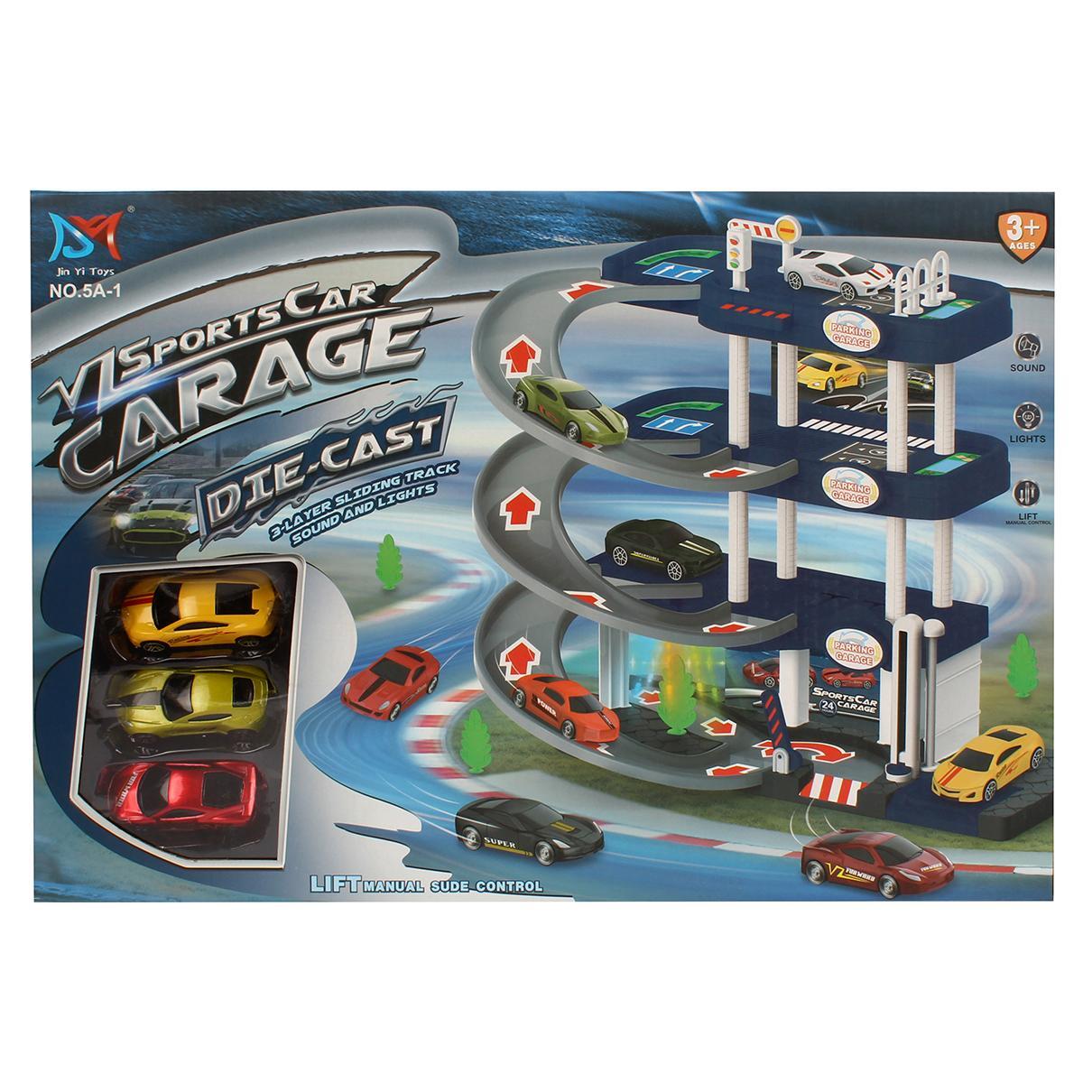 Трехуровневая парковка "V1 Sports Car Garage" станет идеальным подарком для маленького автолюбителя. Игрушка сочетает в себе сразу несколько функций: гараж, трек и конструктор.