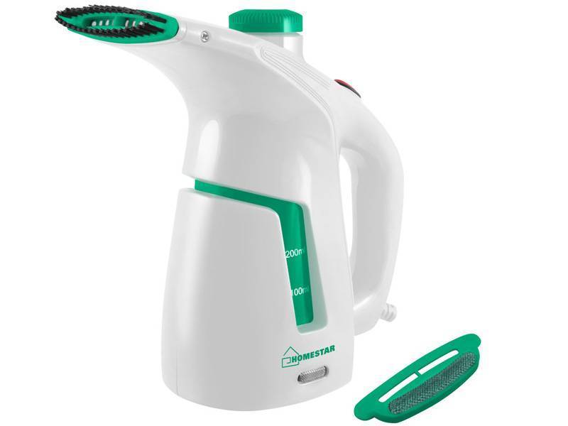 Парогенератор Homestar HS-7002 800Вт 200мл Режим вертикального отпаривания Объем резервуара для воды 200 мл 15 минут непрерывного пара Температура пара 98°С Длина шнура: 1,6 м