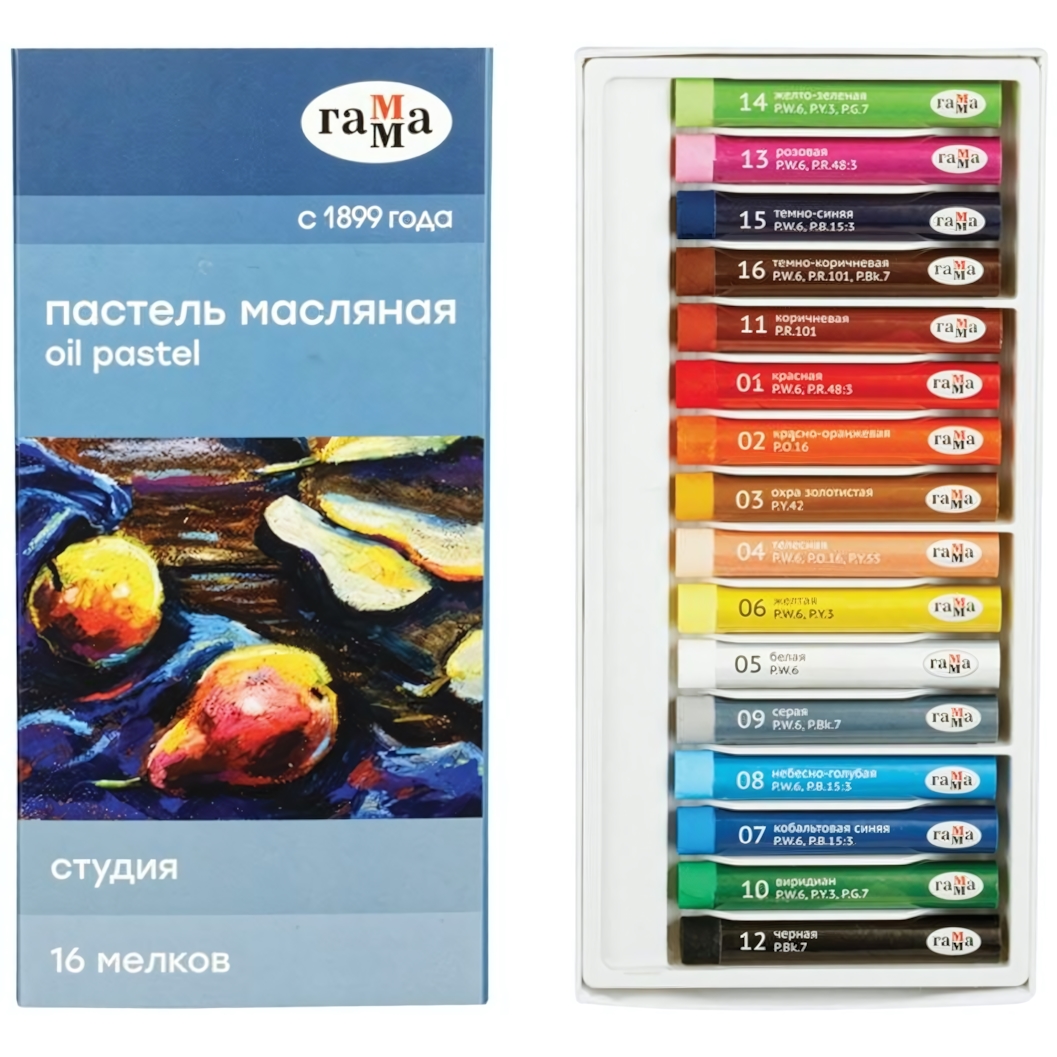 Масляная пастель «Студия» 16 цветов, мягкие мелки 8,8 мм, яркие стойкие цвета