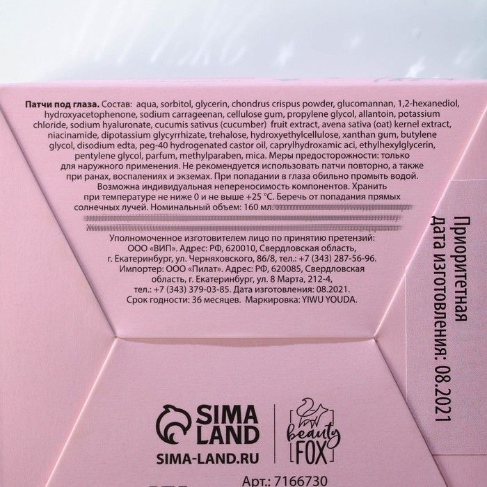 В упаковке содержится 60 штук патчей, что обеспечивает длительное использование. Упаковка выполнена в розовом цвете с элементами дизайна в виде звезд, что создает уютную атмосферу. Патчи имеют желеобразную текстуру, которая легко наносится и приятно ощущается на коже.