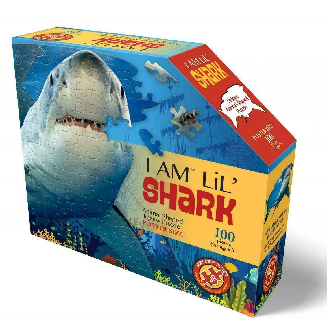 Пазл детский контурный "I AM Lil' SHARK", 100 элементов, форма акулы, морская тематика
