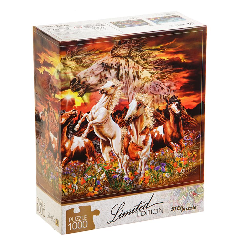Этот пазл на 1000 элементов превращает обычную сборку в настоящее приключение. Перед вами не просто красивая картина с лошадьми на фоне закатного неба, а художественная головоломка, в которой спрятано 16 лошадей. Сборка становится азартным поиском деталей и скрытых образов, тренируя наблюдательность и даря чувство удовлетворения от каждого найденного силуэта.