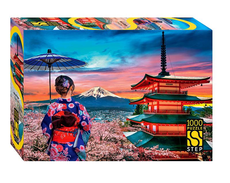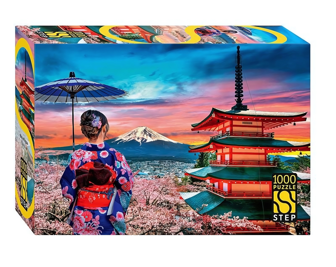 Пазл «Вид на Фудзи» на 1000 элементов — это возможность создать своими руками изящную картину с японским настроением. На изображении — девушка в традиционном кимоно на фоне величественной горы Фудзи и многоярусной пагоды. Сборка помогает отвлечься от повседневной суеты, сосредоточиться на деталях и почувствовать гармонию.