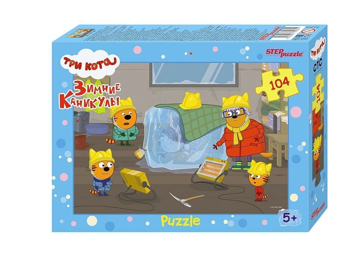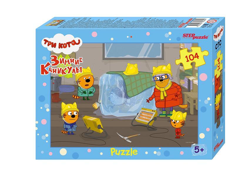 Пазл "Три кота. Зимние каникулы", 104 элемента, 27×18 см, картон, 5+ – развитие внимания