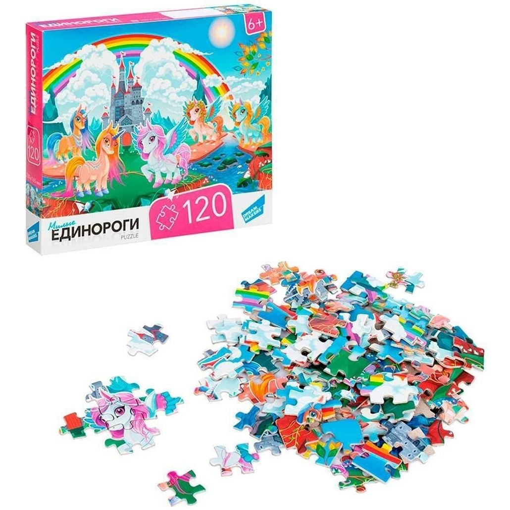 Пазл 120 элементов "Единороги", развивающая игра для детей 5+
