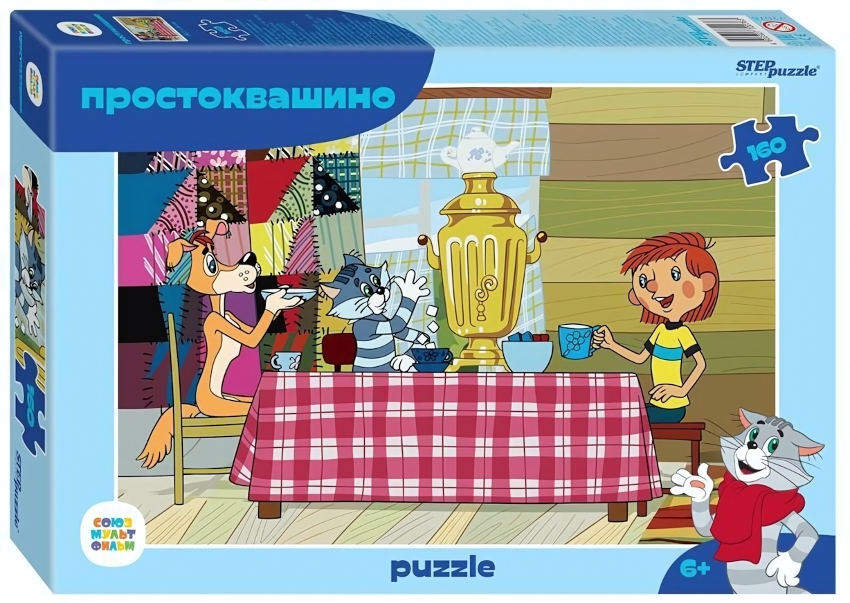Погрузитесь в атмосферу доброй сказки с пазлом «Простоквашино», состоящим из 160 прочных картонных деталей. На красочном изображении изображена забавная сцена чаепития с участием популярных персонажей из культового мультфильма: кот Матроскин, пес Шарик и девочка за большим самоваром. Сборка пазла переносит в уютный мир деревенского дома, даря тепло и ностальгию.