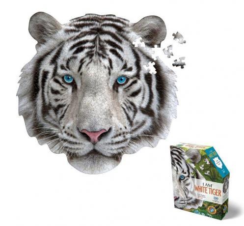 Погрузитесь в мир дикой природы с контурным 3D-пазлом "Белый тигр"!