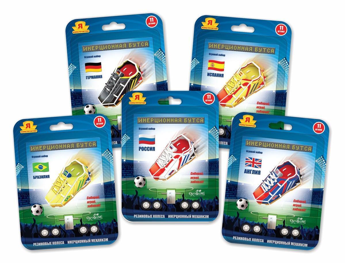 3D пазл «Инерционная бутса» с инерционным механизмом, резиновые колеса, сборка 11 деталей, цвета стран