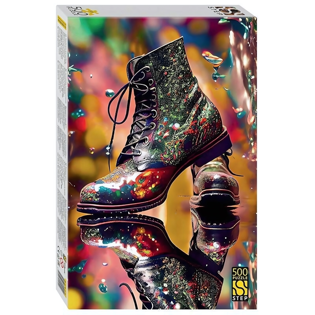 - Яркое изображение ботинок с эффектом брызг краски привлекает внимание