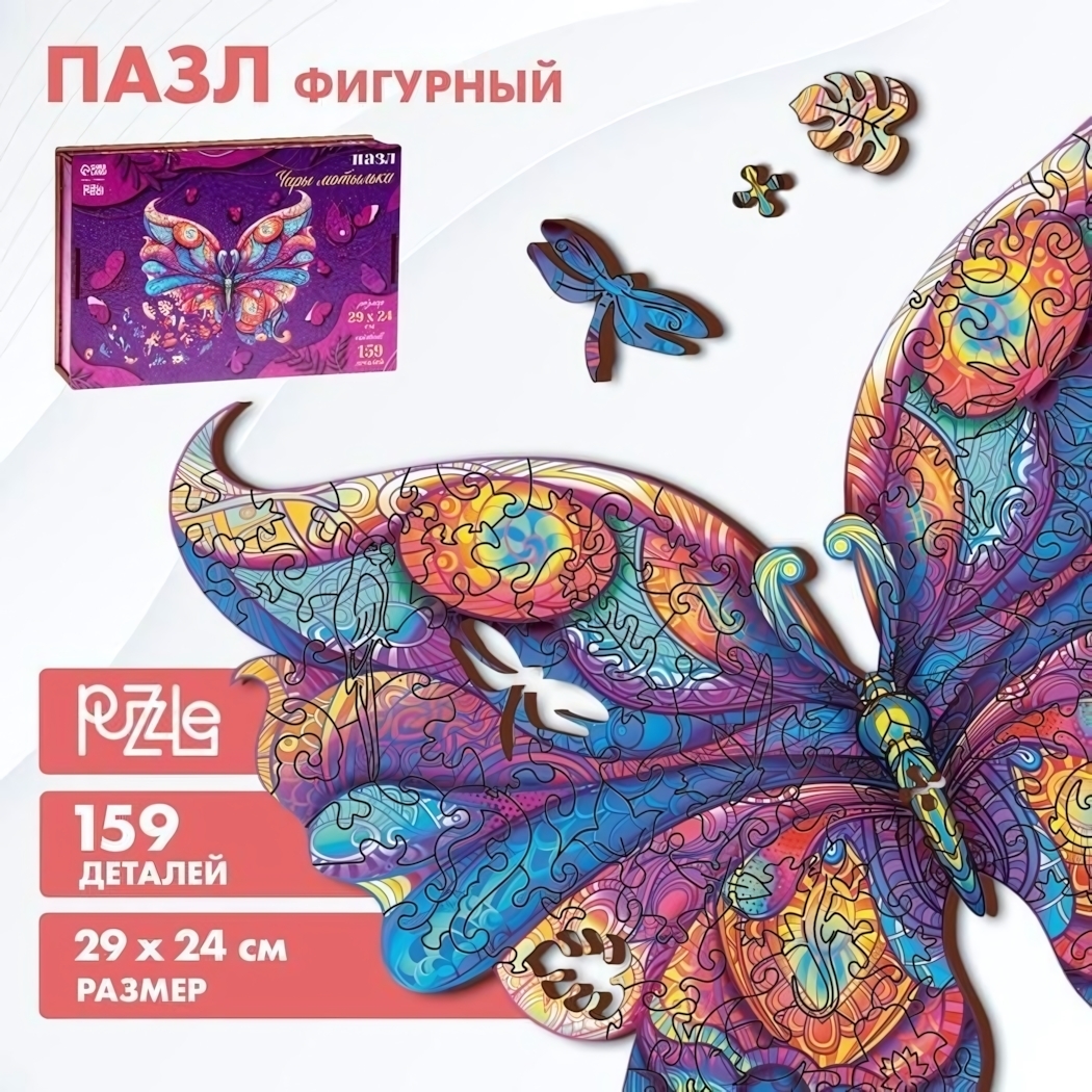 Пазл деревянный фигурный "Чары мотылька", 159 дет., 29x24см, в деревянной коробке