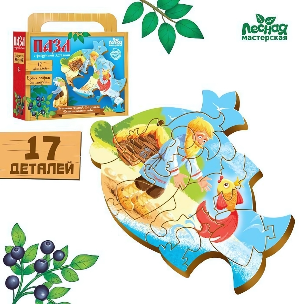 Пазл деревянный "Сказка о рыбаке и рыбке", 17 деталей, размер рыбы