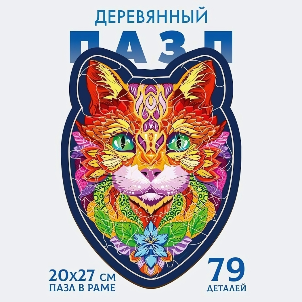 Деревянный пазл в рамке "Кот", 79 деталей, 20x27см, яркий дизайн