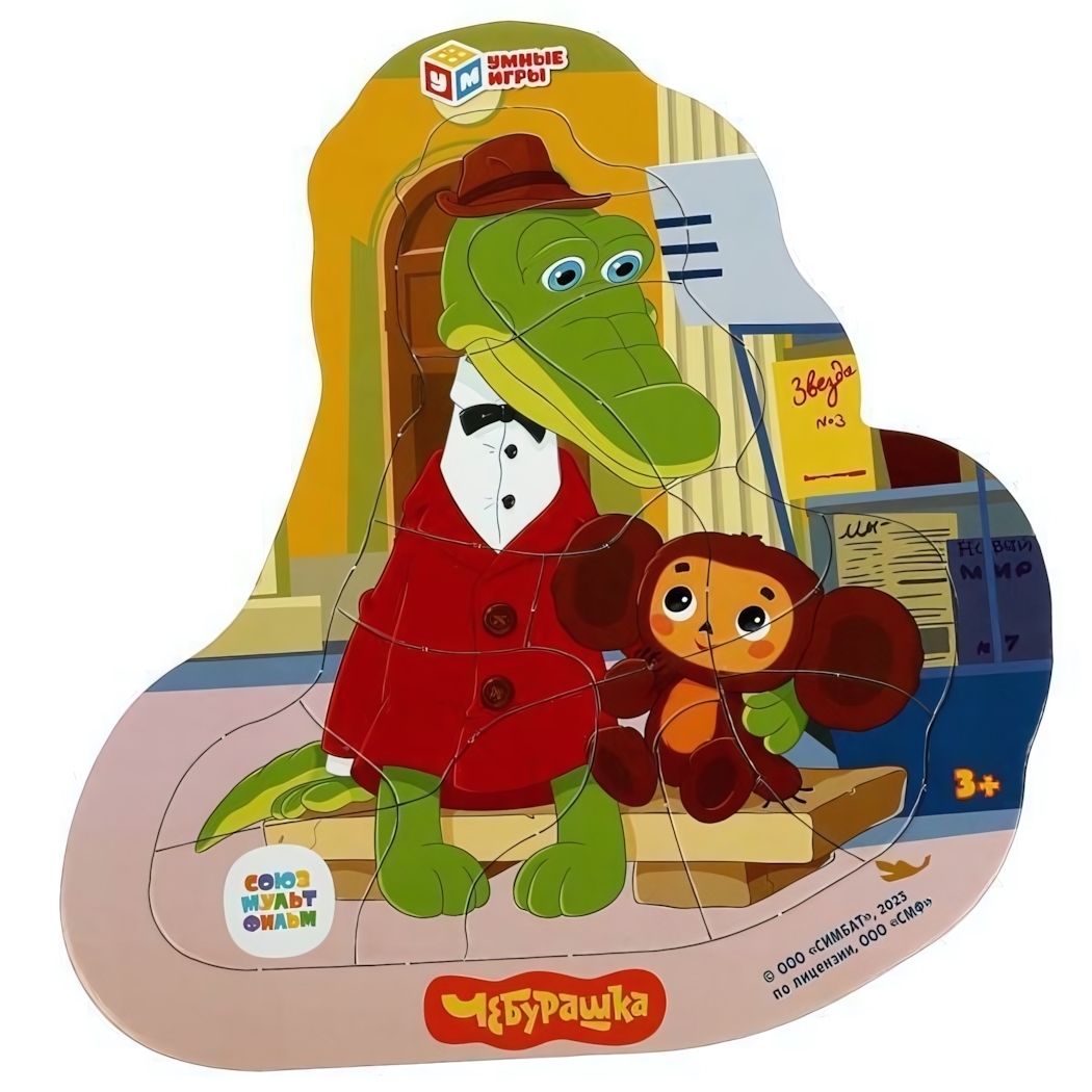 Фигурный пазл «Союзмультфильм: Чебурашка и Гена» 23х21,5 см, 15 деталей, картон, для развития моторики