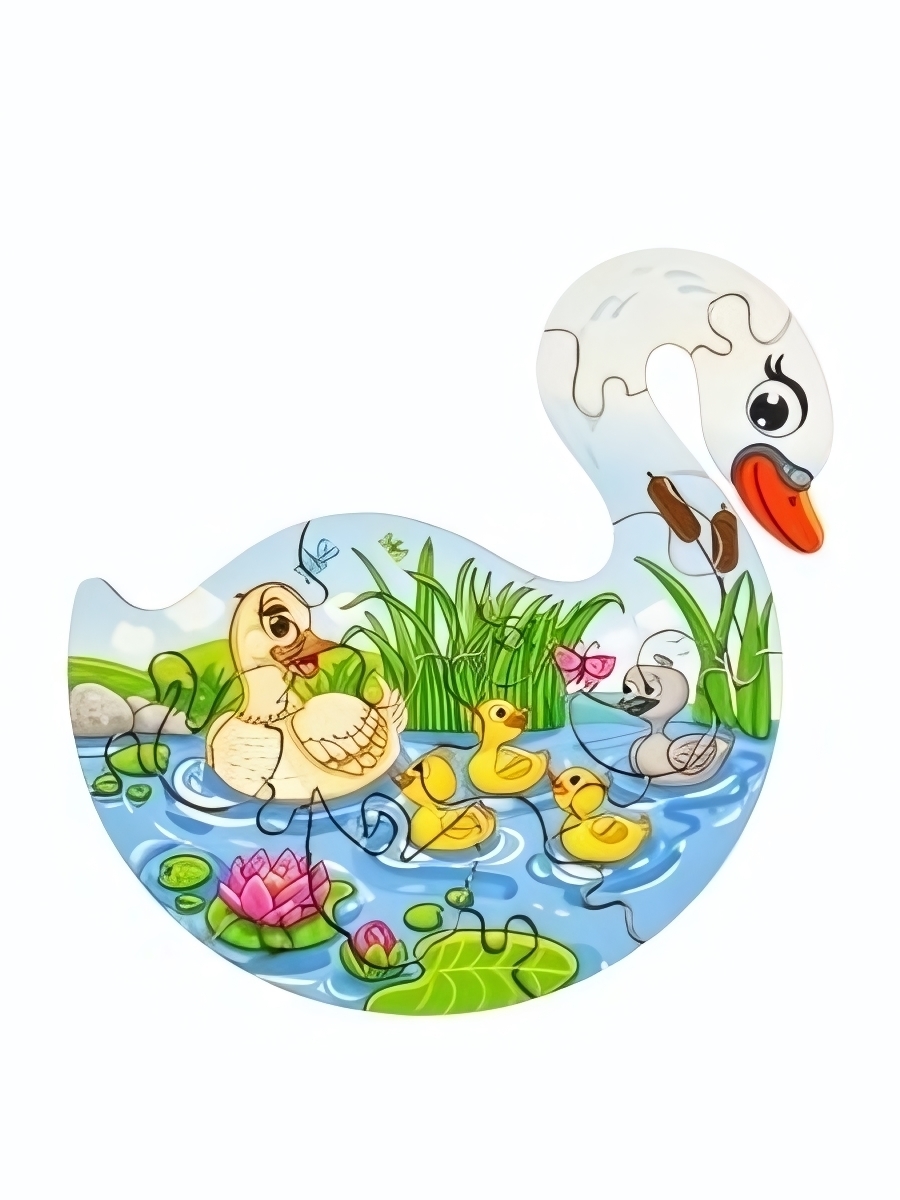 Этот увлекательный пазл подарит вашему ребёнку незабываемое время творчества и развития внимания. Собирая яркую сцену с утятами и лебедем, малыш улучшает мелкую моторику, логику и воображение. Идеально подходит для детей от 3 лет, способствует закреплению знаний о природе и сказочных персонажах.