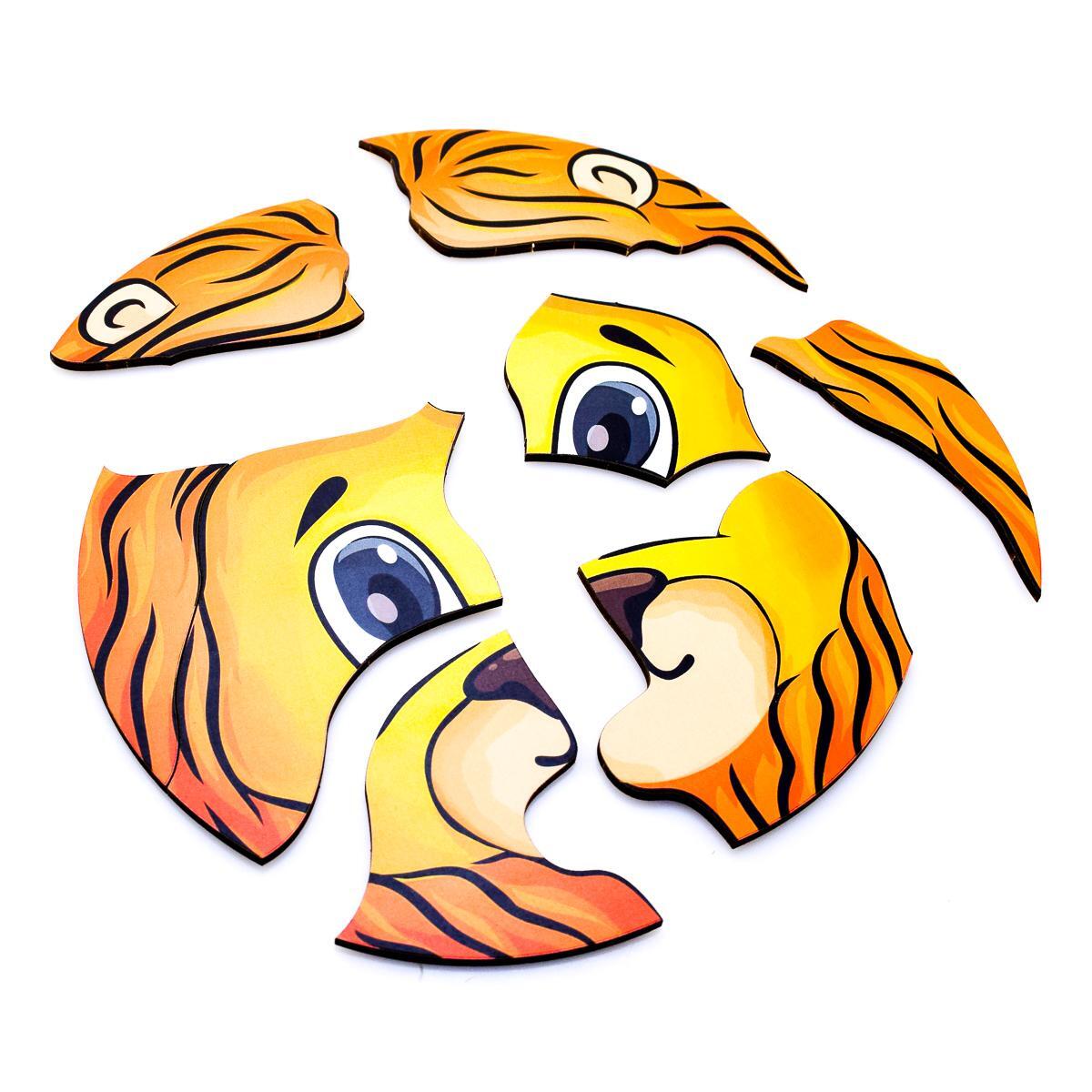 Пазл состоит из 8 тщательно прорезанных деталей, которые легко собираются в изображение дружелюбного львенка — идеальной игрушки для стимуляции внимания, мелкой моторики, пространственного и логического мышления.