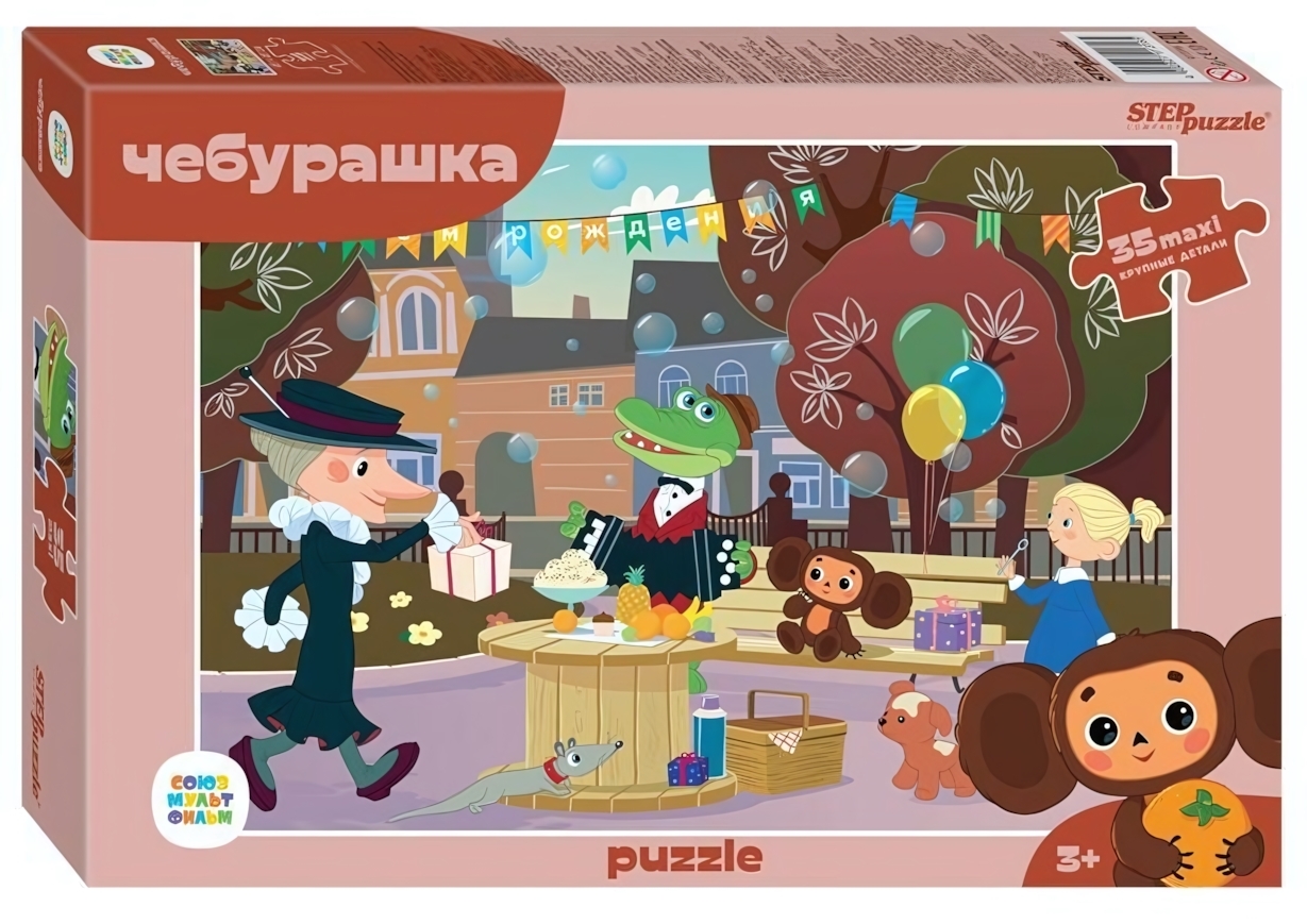 Этот яркий пазл на 35 крупных деталей подарит вашему ребёнку радость и увлекательное времяпрепровождение. На картинке изображён весёлый праздник с любимыми героями мультфильма «Чебурашка» — воздушные шары, гирлянды и вкусные угощения создают атмосферу радости и дружбы.