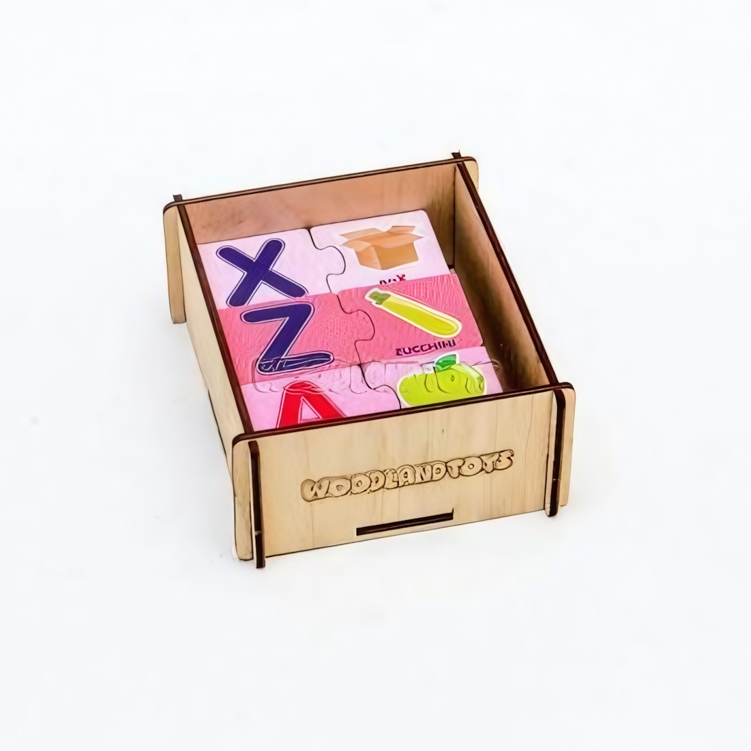 Пазл-набор 'Алфавит' — это идеальное игровое пособие для первого знакомства вашего ребенка с алфавитом. Эта игрушка не только развлекает, но и обучает, помогая детям запомнить буквы и слова в увлекательной форме. Пазл состоит из парных деталей, которые удобно хранятся в аккуратной деревянной коробке. Игра с этим набором проста и понятна: ребенку нужно соединить соответствующие буквы и изображения предметов, что делает процесс обучения интересным и занимательным.