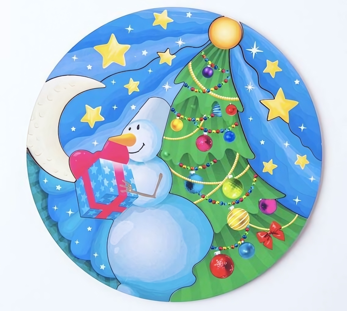 Размеры пазла: размеры собранной картинки позволяют украсить стену или поставить на полку. Изображение с зимним мотивом украшено яркими деталями — звездным небом, елкой, снеговиком и снежным пейзажем, создавая праздничное настроение и атмосферу уюта. Пазл подходит как подарок на Новый год и рождественские праздники, так и для праздничных развлечений в кругу семьи или друзей.