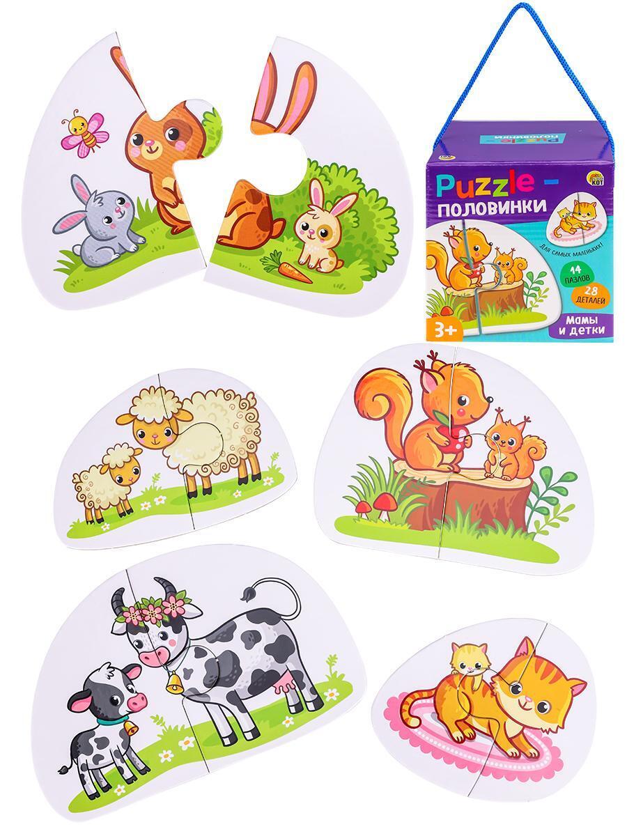 Пазл-половинки «Мамы и детки», 28 элементов, животные, картон, от 3 лет