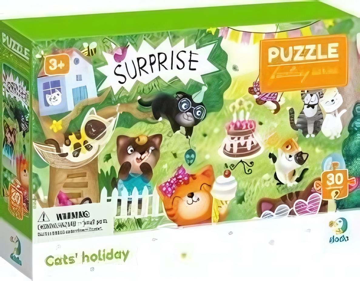 Пазл Dodo "Праздник котиков", 30 элементов, яркий и красочный, 27x20 см