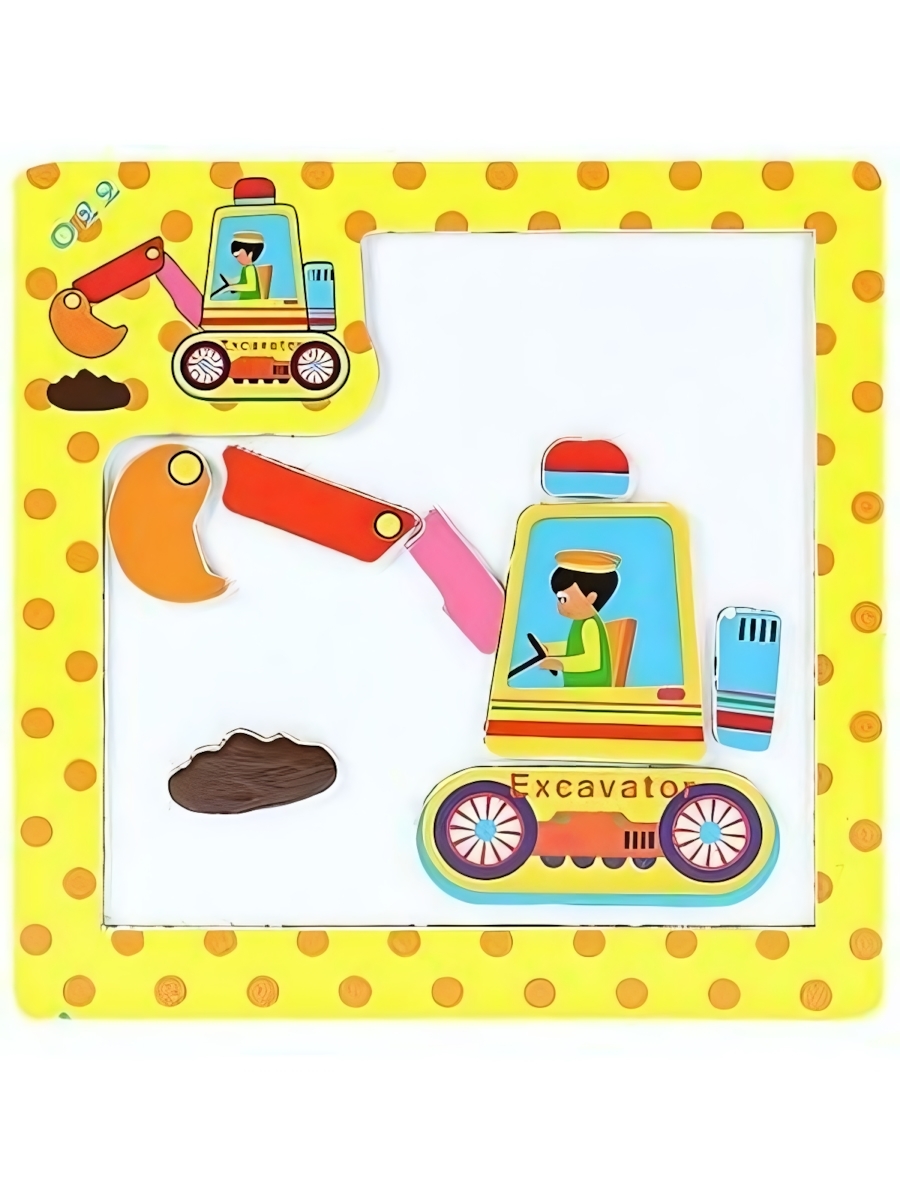 Этот пазл состоит из 8 элементов, которые легко вставляются в рамку. Игрушка подходит для детей от 3 лет и старше, что делает её идеальным подарком для маленьких любителей строительной техники. Рамка выполнена из качественного дерева, что обеспечивает долговечность и безопасность в использовании.