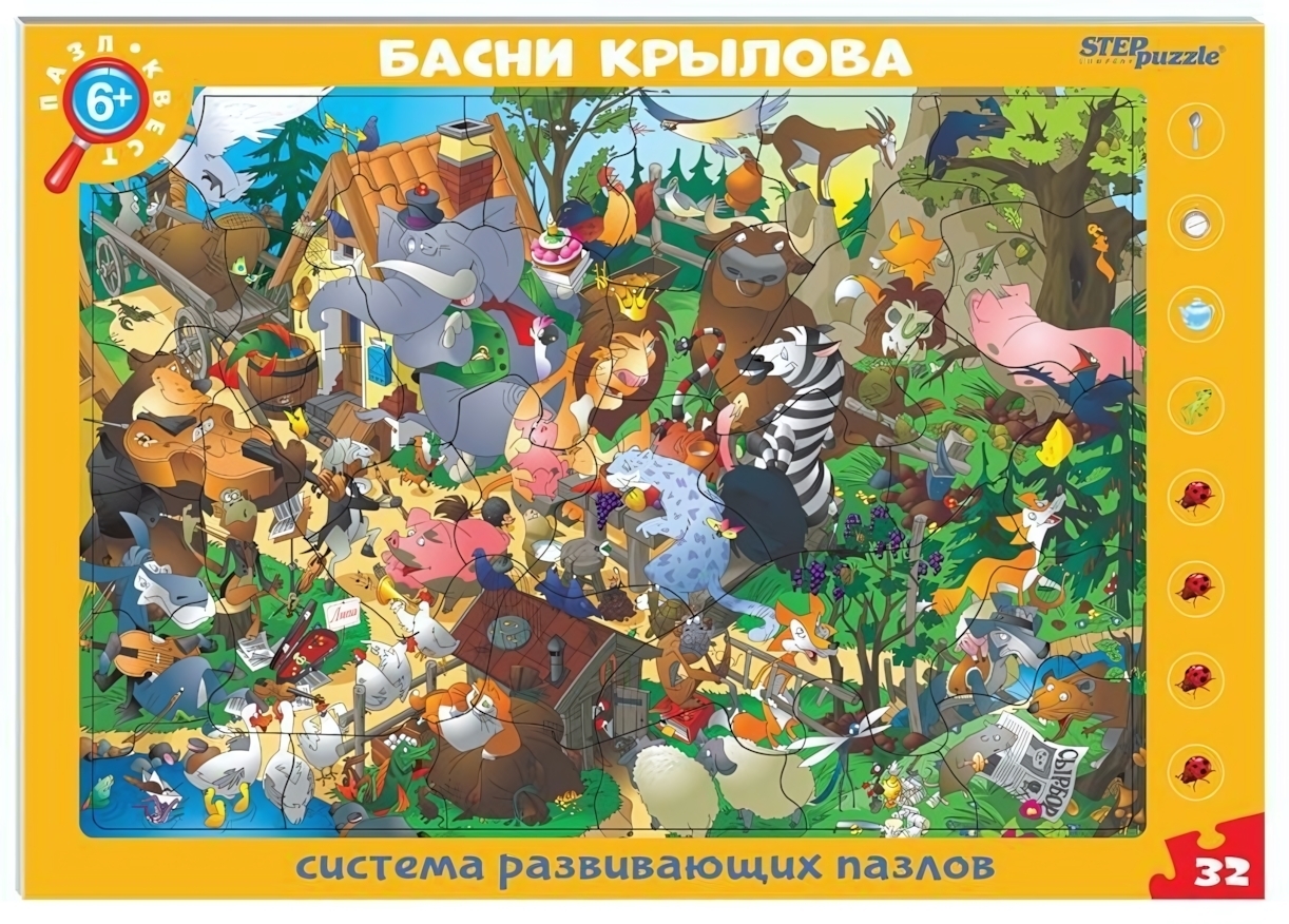 Пазл развивающий "Басни Крылова. Пазл-квест", 32 элемента, для детей 6+, яркие картинки