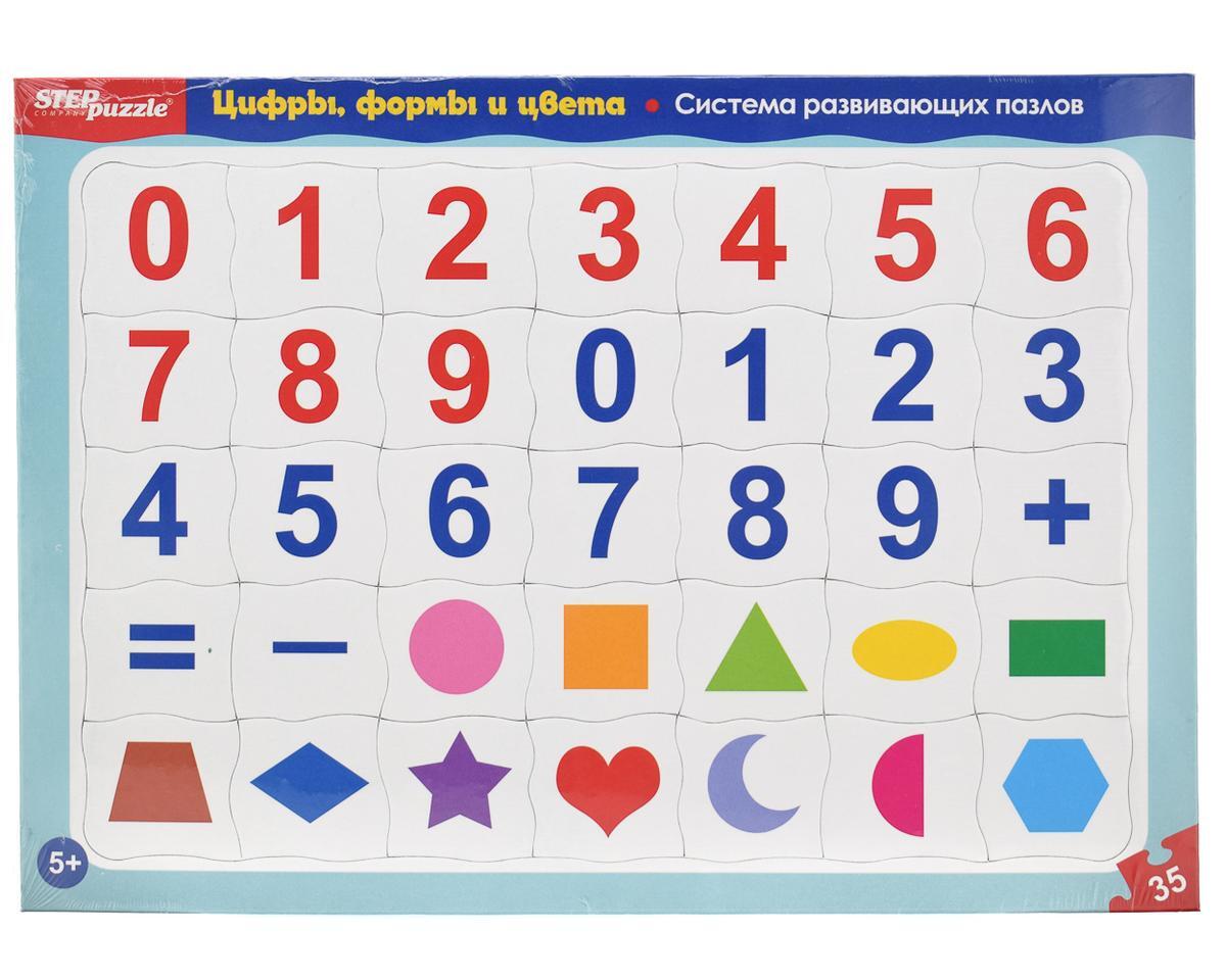 Пазл развивающий 'Цифры, формы и цвета', 35 эл., картон, 34х24см