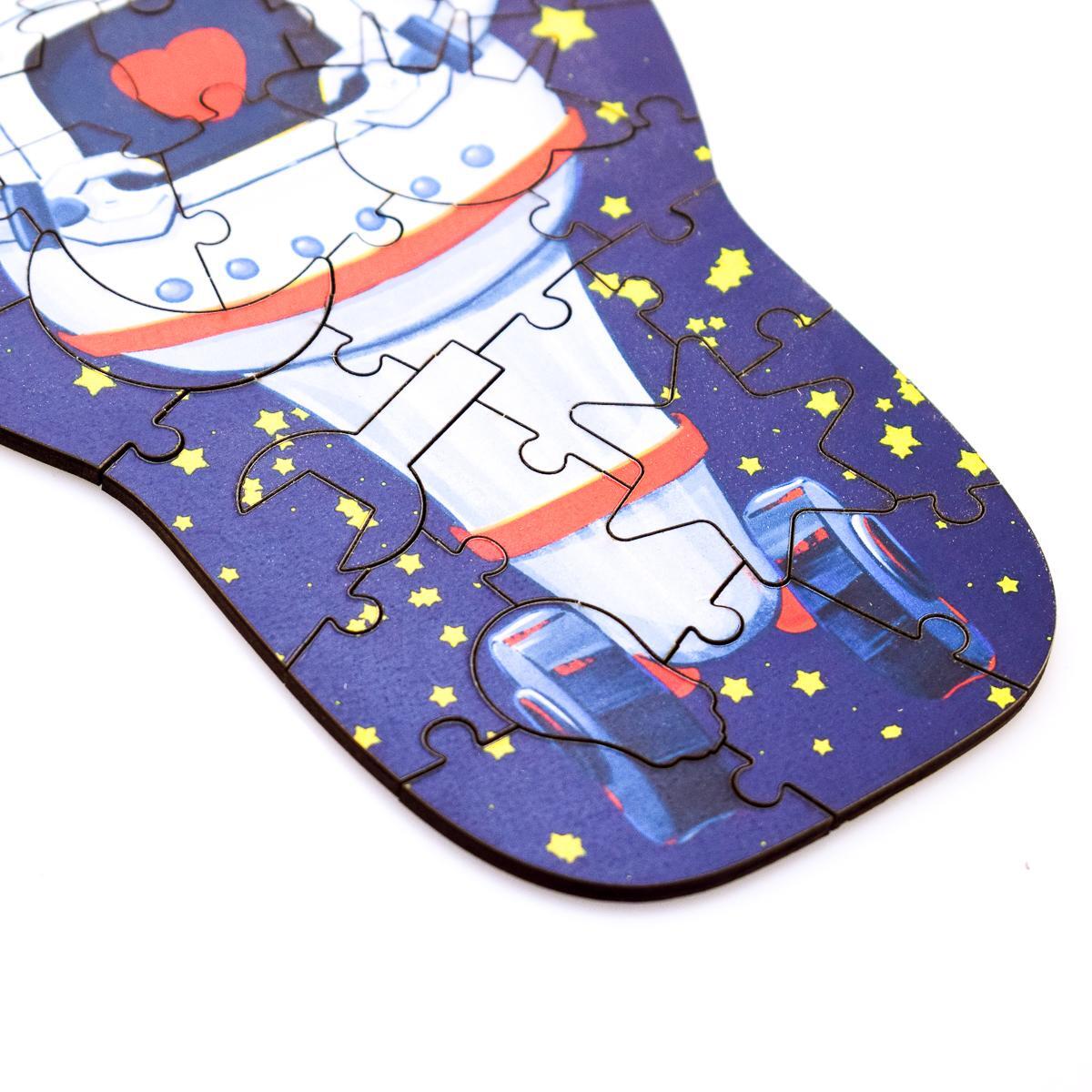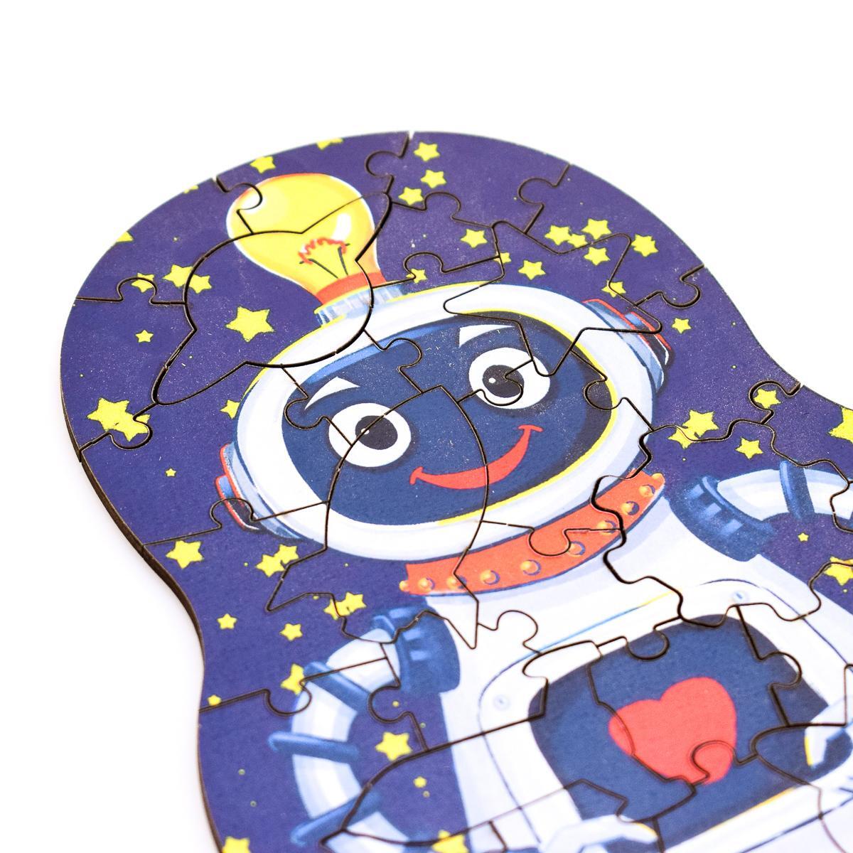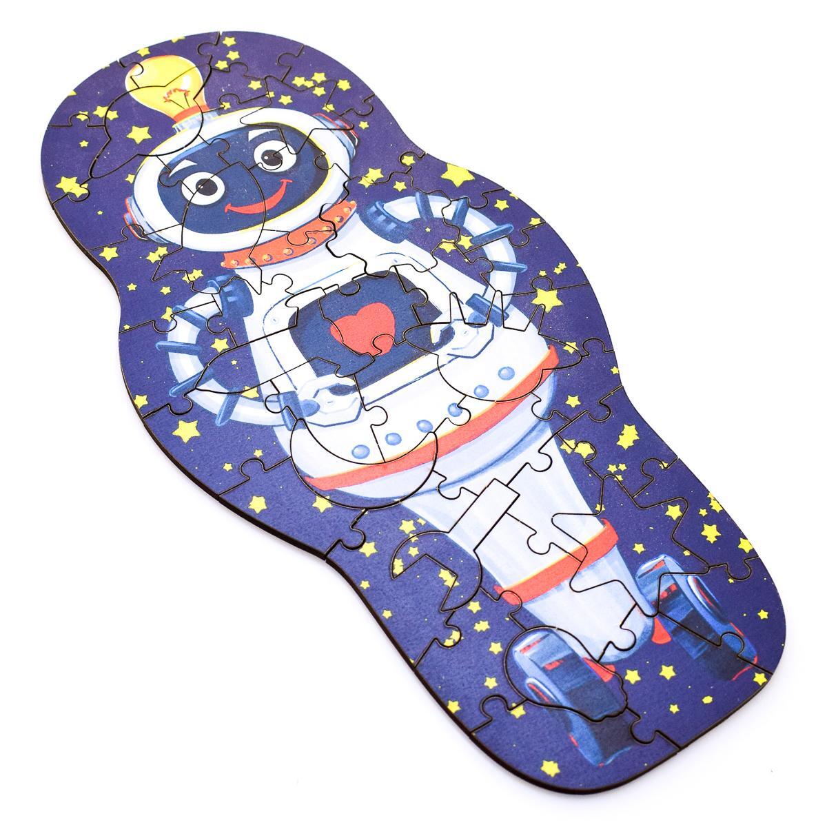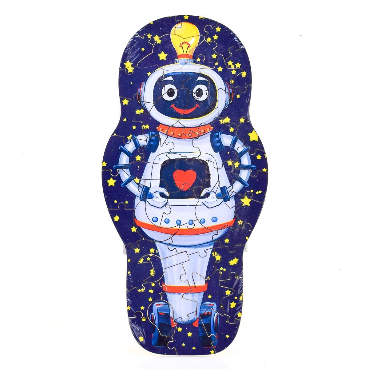 Пазл 'Робот' — это не просто игрушка, а увлекательное занятие, которое способствует развитию мелкой моторики и логического мышления у детей. Яркий и красочный дизайн с изображением робота на синем фоне, усыпанном звёздами, привлечёт внимание вашего ребёнка и сделает процесс сборки интересным и увлекательным.
