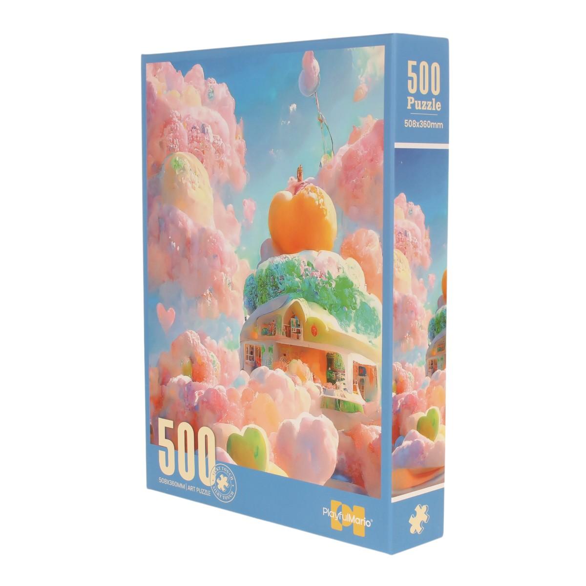 Этот пазл не просто развлечение, а увлекательное путешествие в мир фантазий и творчества. Собирая 500 элементов, вы создадите красочную картину с розовыми облаками, сказочным домиком и радужными акцентами. Яркие цвета и детализированные изображения подарят вам часы удовольствия и релаксации.