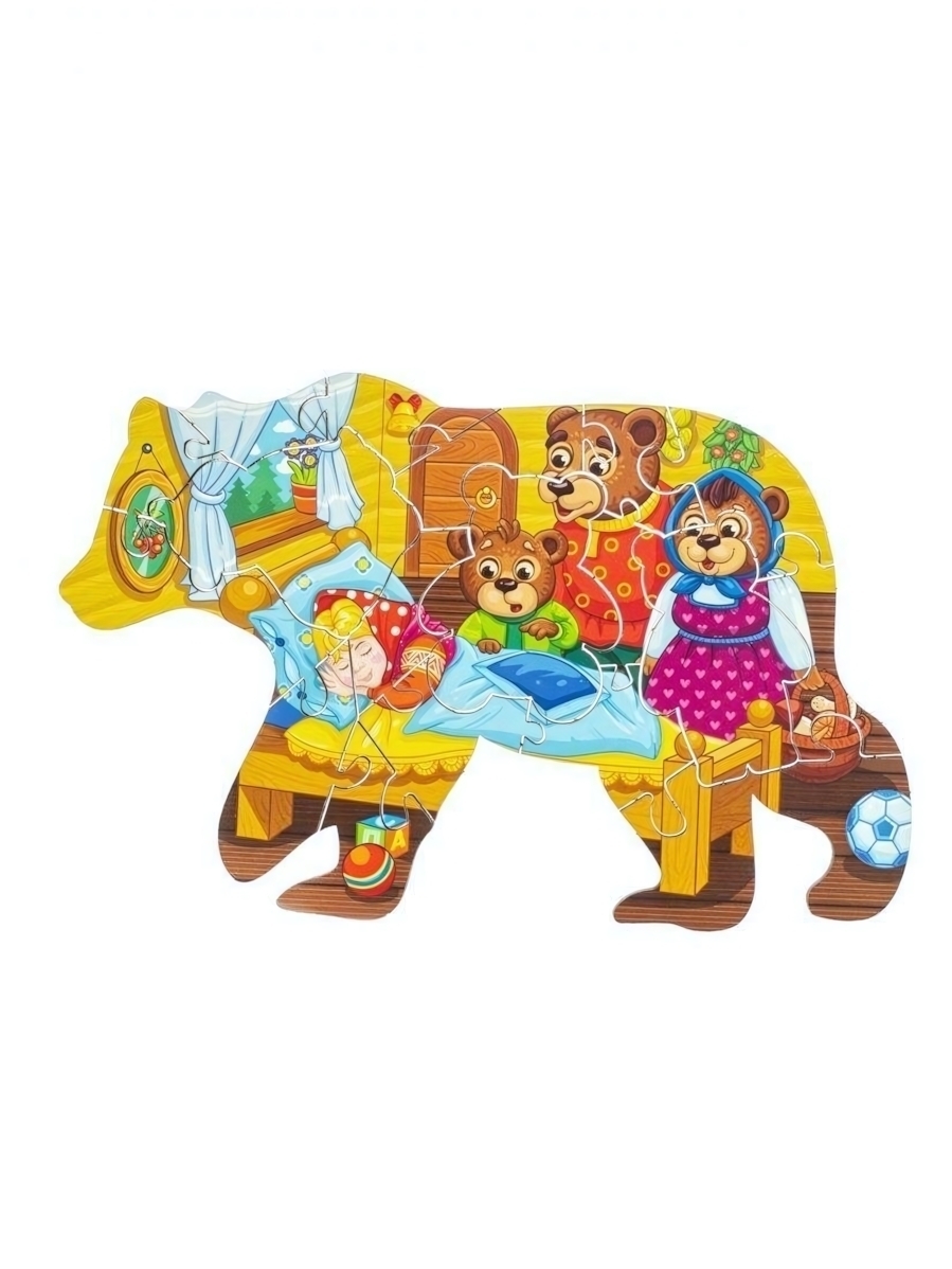 Этот набор состоит из 18 ярких фигурных деталей, изображающих сцену из сказки с медведями и детьми, созданных из экологически чистого материала. Он отлично подходит для детей от 3 лет и старше, способствует формированию зрительных образов и логического мышления. Благодаря четким контрастам и насыщенной цветовой гамме, дети легко узнают героев и элементы сцены, что делает обучение веселым и познавательным.