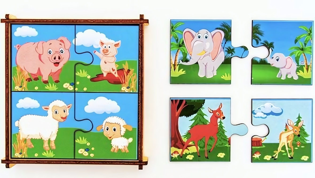 Экологичные деревянные пазлы с парными изображениями животных помогут вашему ребёнку освоить важные навыки через увлекательную игру. Яркие детали с закруглёнными краями полностью безопасны для детских рук.