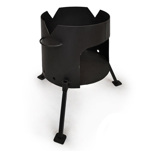 Печь изготовлена из прочного металла, что гарантирует ее долговечность и надежность. Она легко очищается и не требует сложного ухода. Размеры печи позволяют использовать ее с казанами объемом от 8 до 10 литров, что делает ее универсальным решением для различных кулинарных задач.