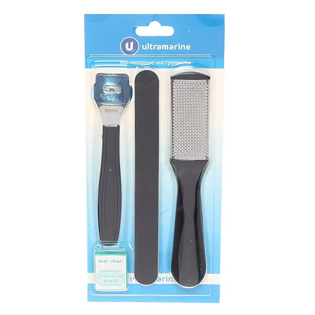 Педикюрный набор «Ultramarine», 4 предмета (терка, скребок, полировка, лезвия), металл/пластик, 24х11 см