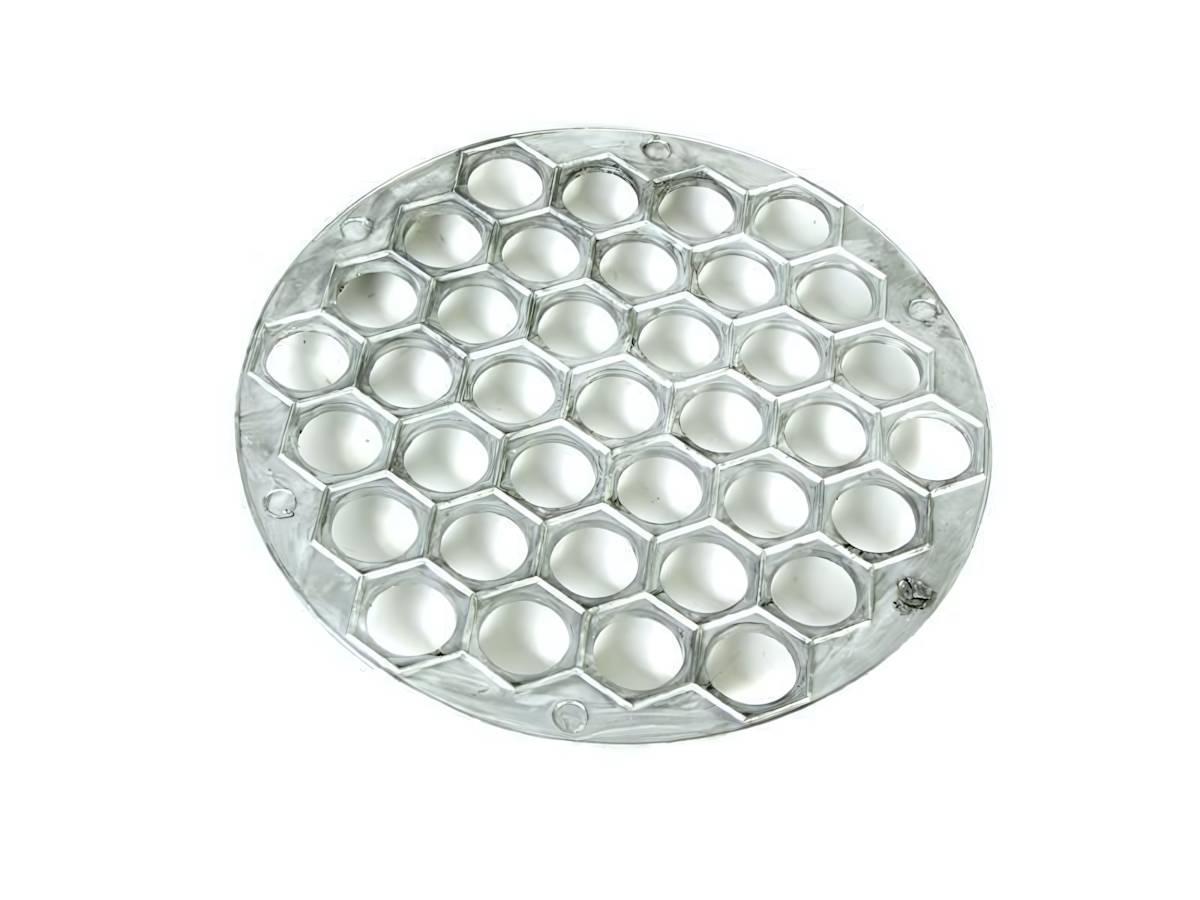 Создавайте аккуратные домашние пельмени и вареники профессионального вида благодаря удобной металлической форме. Круглая решетка с 24 ячейками обеспечит одинаковый размер каждого изделия, экономя ваше время на лепку.