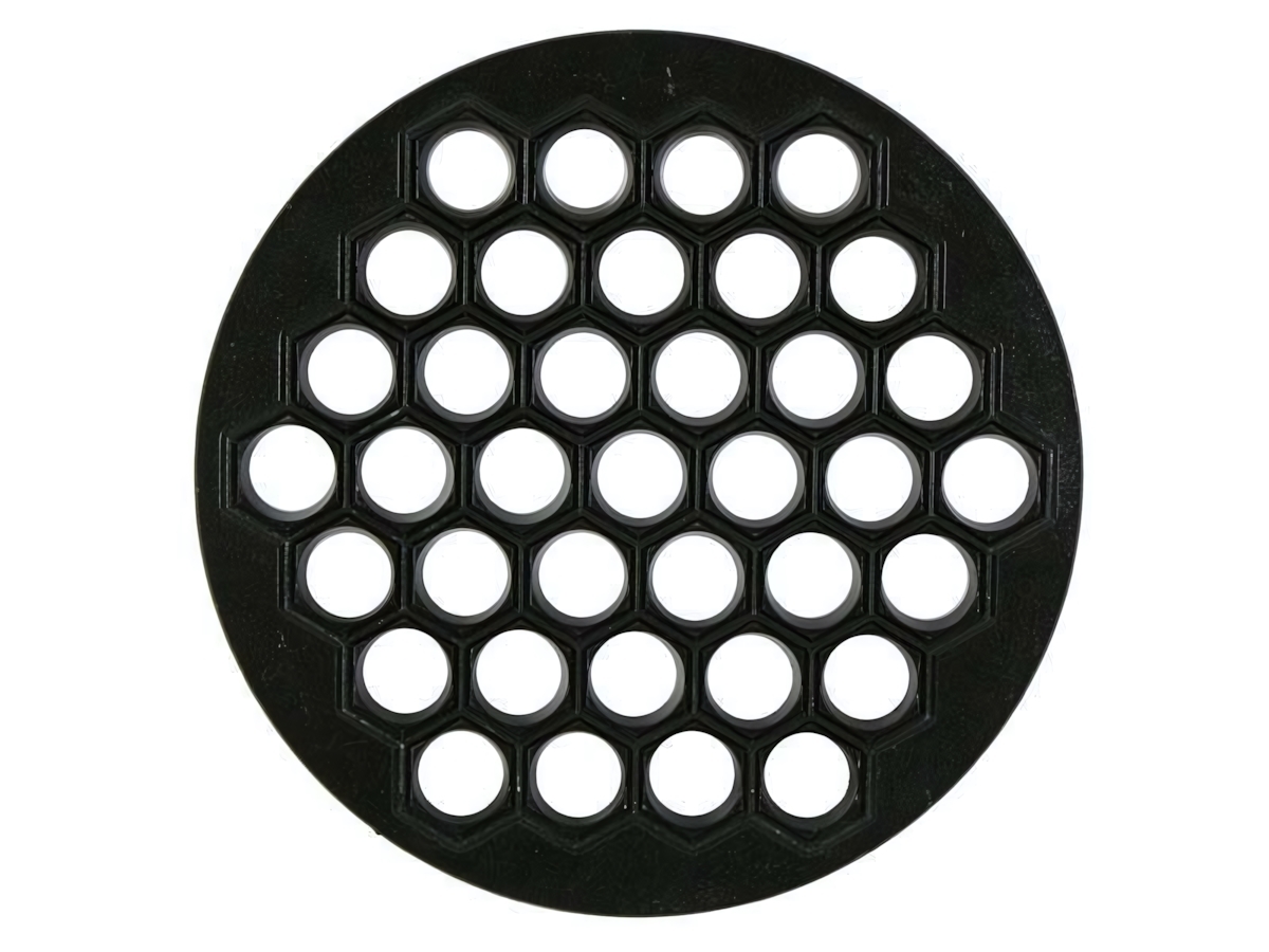Подходит для приготовления пельменей, вареников, мини-пирожков и других изделий с начинкой. Просто раскатайте пласт теста, уложите его на форму, добавьте начинку, накройте вторым пластом и прокатайте скалкой. Готовая партия за один приём!