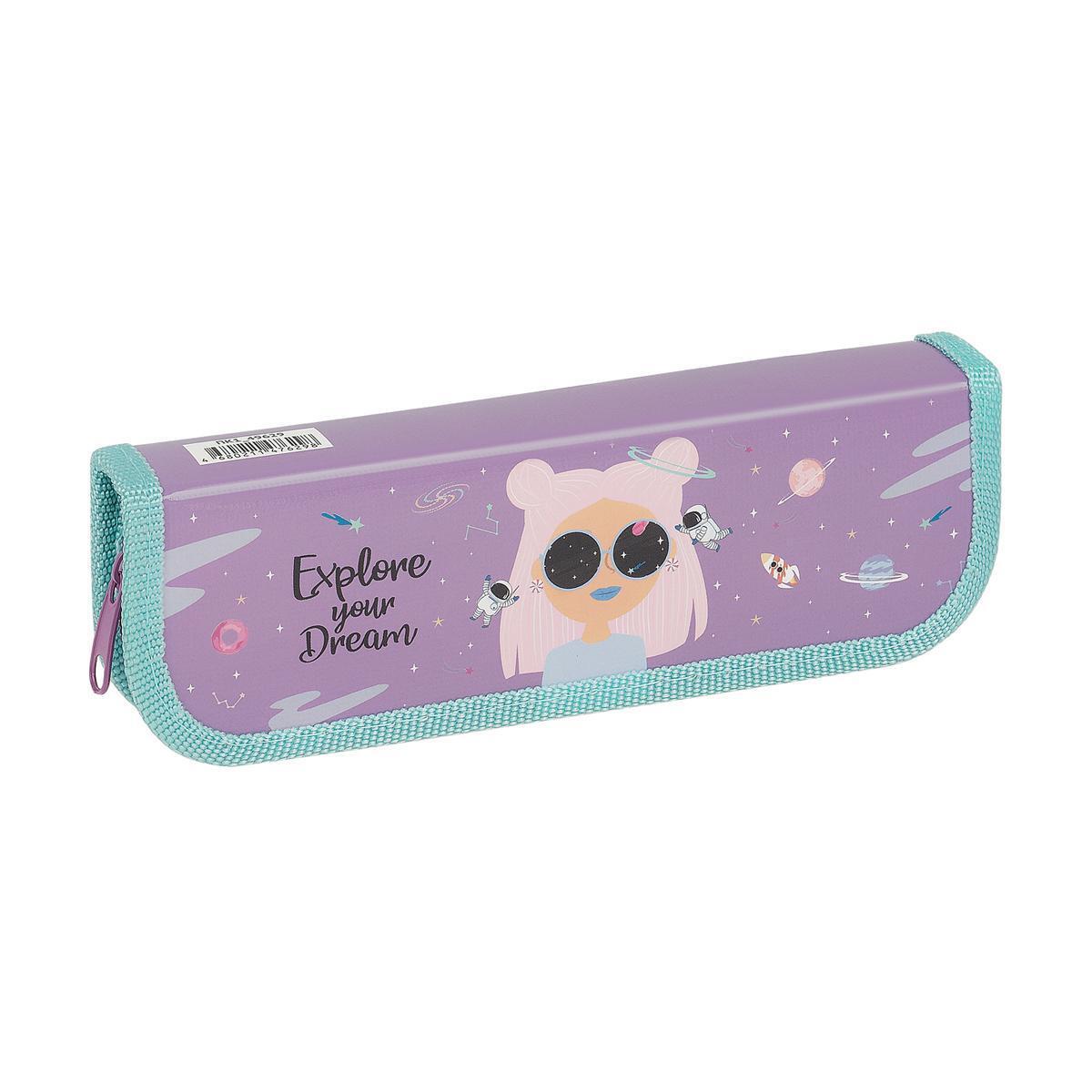 Пенал 'Cool' с космическим принтом, 1 отделение, 190*60 мм, пластик, лиловый/голубой