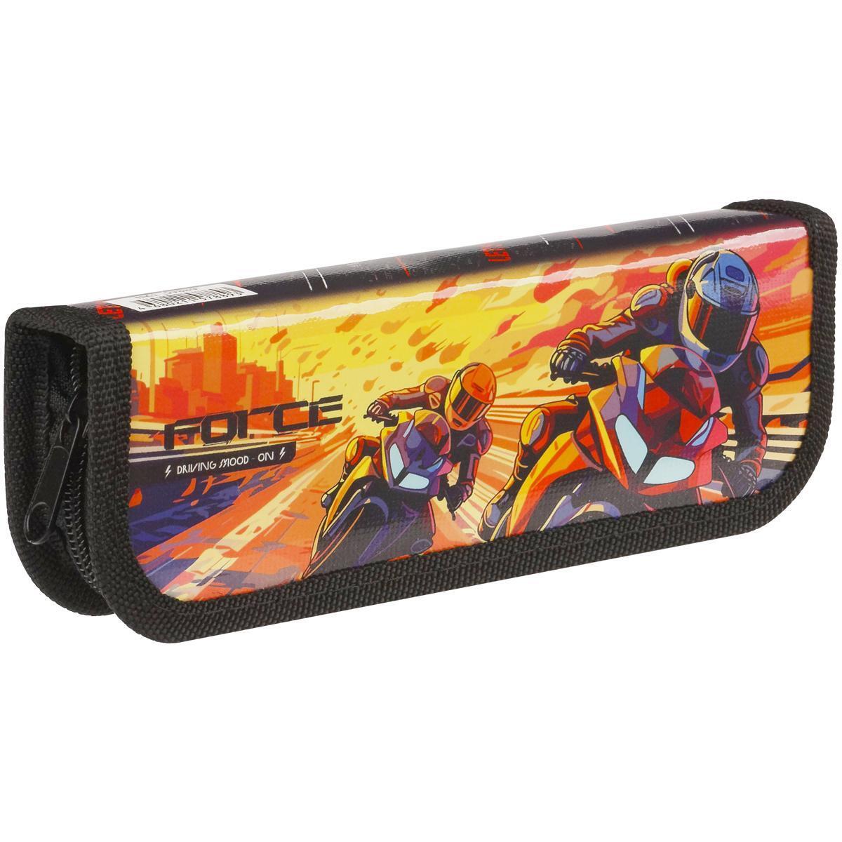 Пенал школьный «Moto Force» с молнией, 19x6 см, ткань, яркий дизайн с мотоциклами, черная окантовка