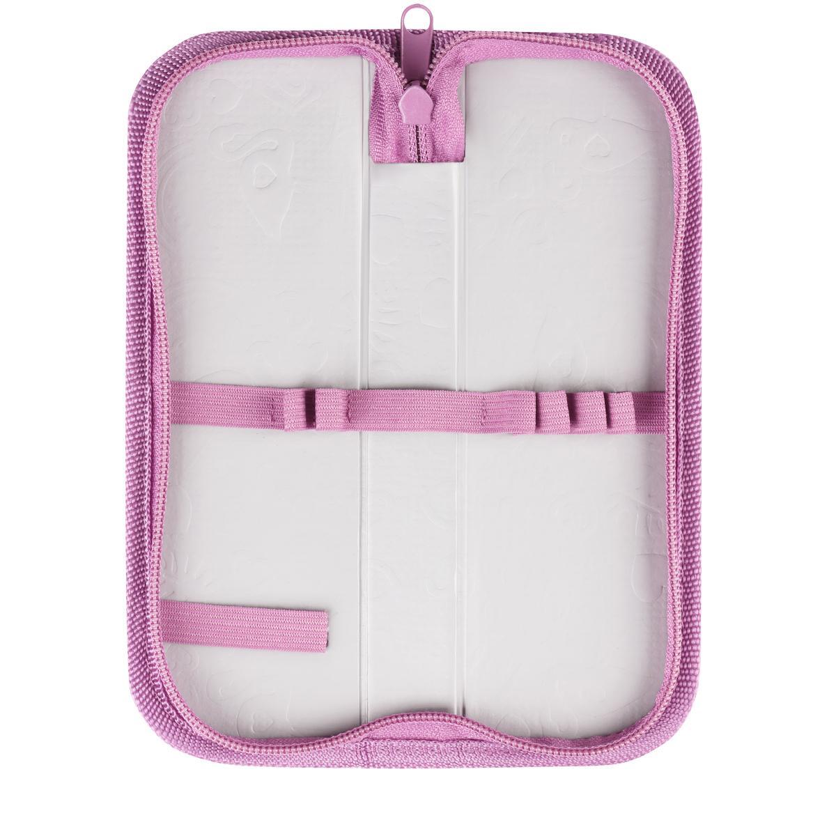 Пенал выполнен из качественного материала, который напоминает ткань с непрозрачной пленкой сверху, что обеспечивает долговечность и защиту содержимого. Застежка на молнии с фиолетовым язычком добавляет удобства в использовании. Кроме того, закругленные края пенала делают его более безопасным и приятным на ощупь. Этот пенал не только функционален, но и станет стильным аксессуаром для вашего рабочего места.