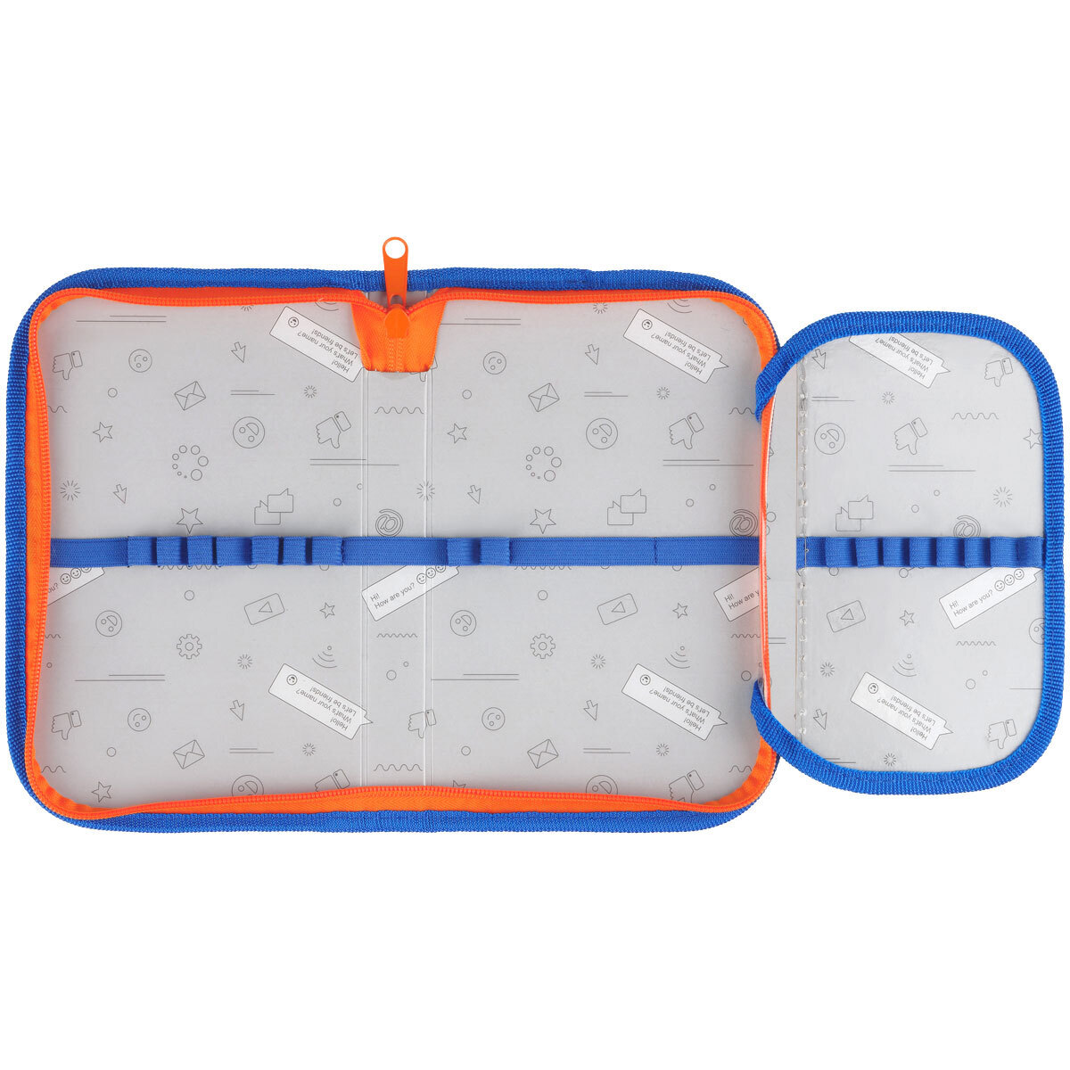 Идеальный выбор для организации письменных принадлежностей, косметики или мелких аксессуаров. Благодаря нейтральной цветовой гамме (темно-синий с оранжевыми акцентами) пенал одинаково хорошо подходит как для девочек, так и для мальчиков.